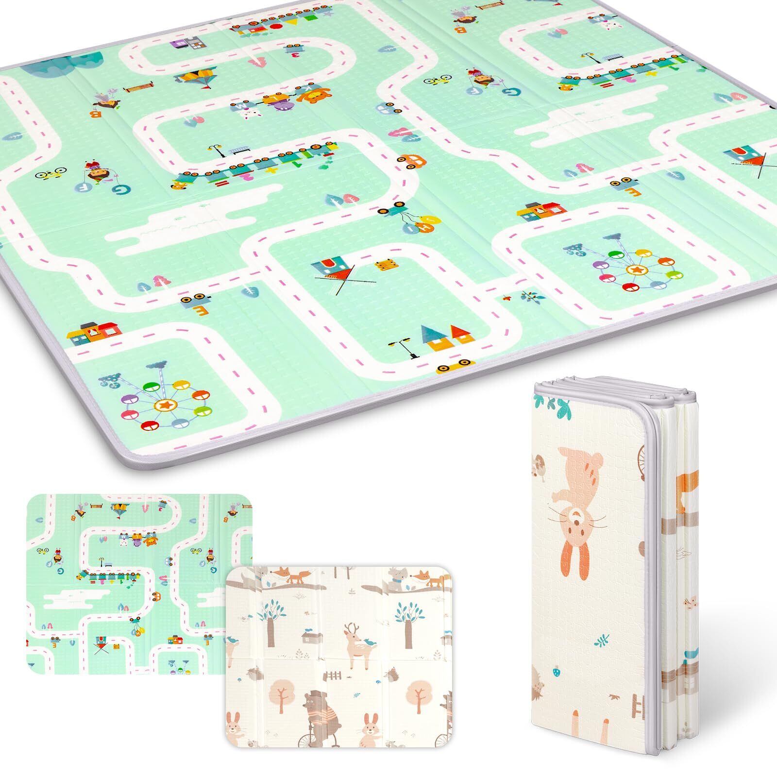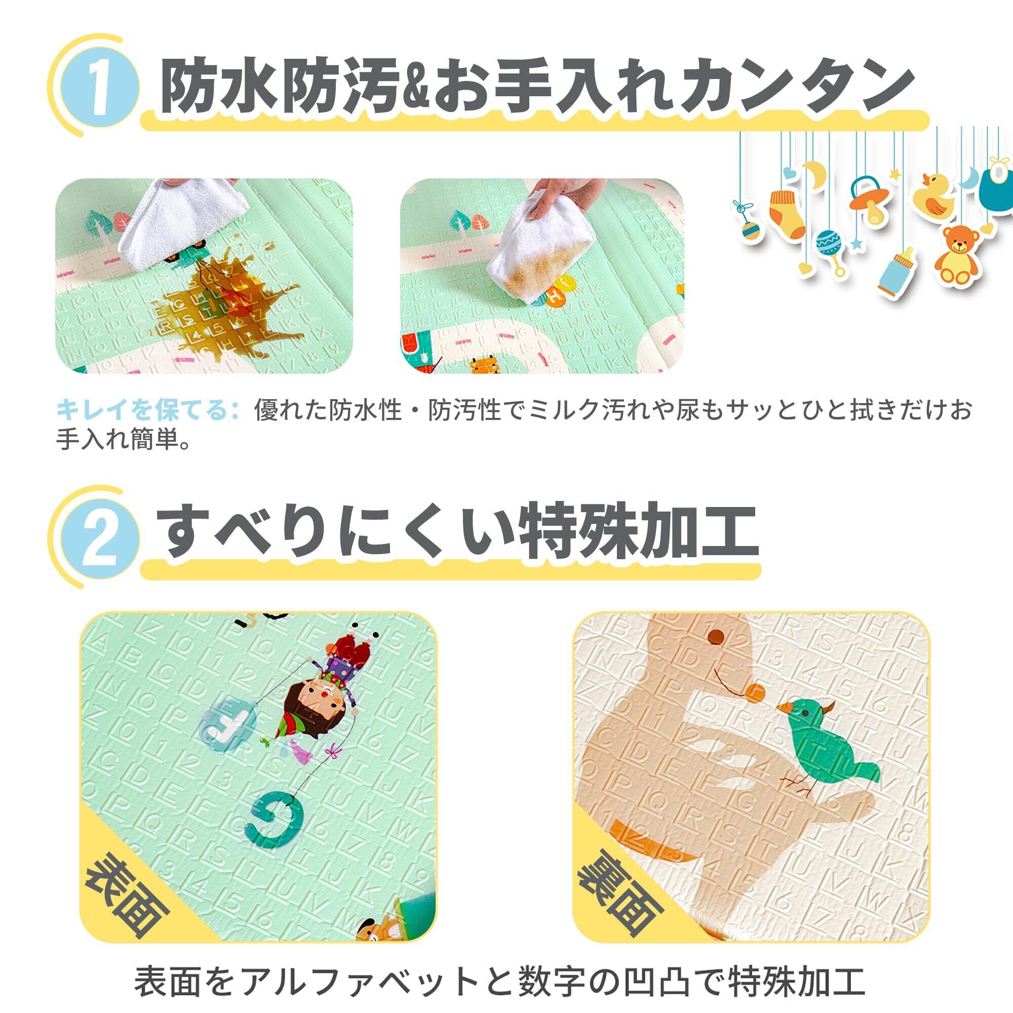 【高い快適性と優れたクッション性】厚さ1cmのXPEフォームスポンジ素材は弾力性と耐圧性に優れ、クッション性も優れており、子供たちに安全な遊び環境を提供できます。 マットの表面は通常柔らかいので、赤ちゃんはその上で這ったり遊んだりするのが非常に快適です。