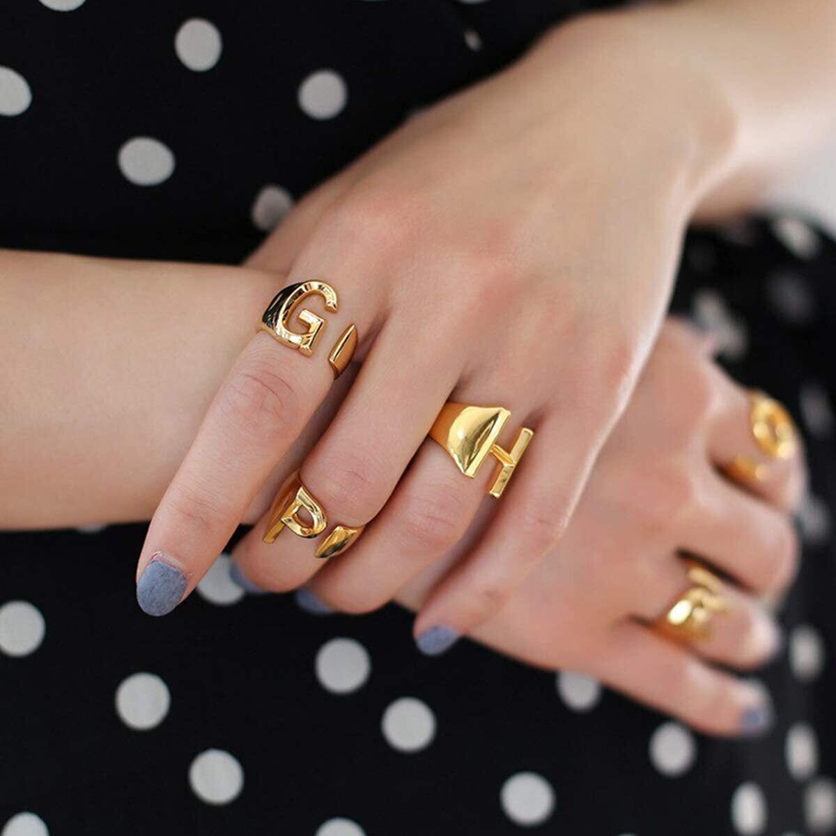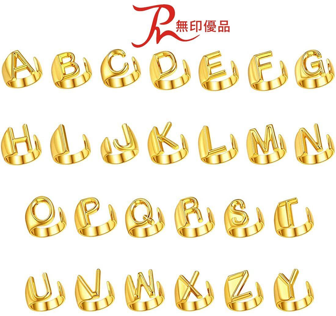 指輪 メンズ フリーサイズ ゴールド 18金 A-Z 26英文 アルファベット イニシャル リング 太目 人差し指 上品 ステンレスリング 指輪物語 ins風 人気 アクセサリー