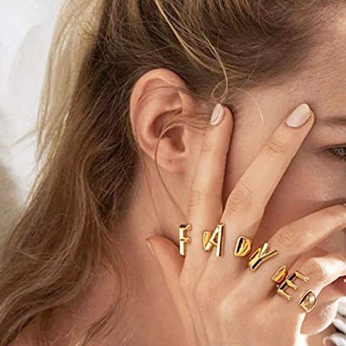 「Rockyu指輪」素材:18金メッキ ステンレス レディース 指輪 フリーサイズ 26英文 アルファベット イニシャルリング 指輪物語