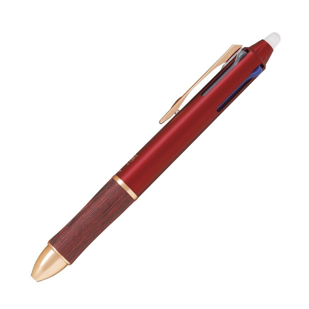 こすると消えるボールペン。 木の質感を楽しめる。ハイクラスのフリクション4色ボールペンに登場した鮮やかなボディカラーのシリーズ。