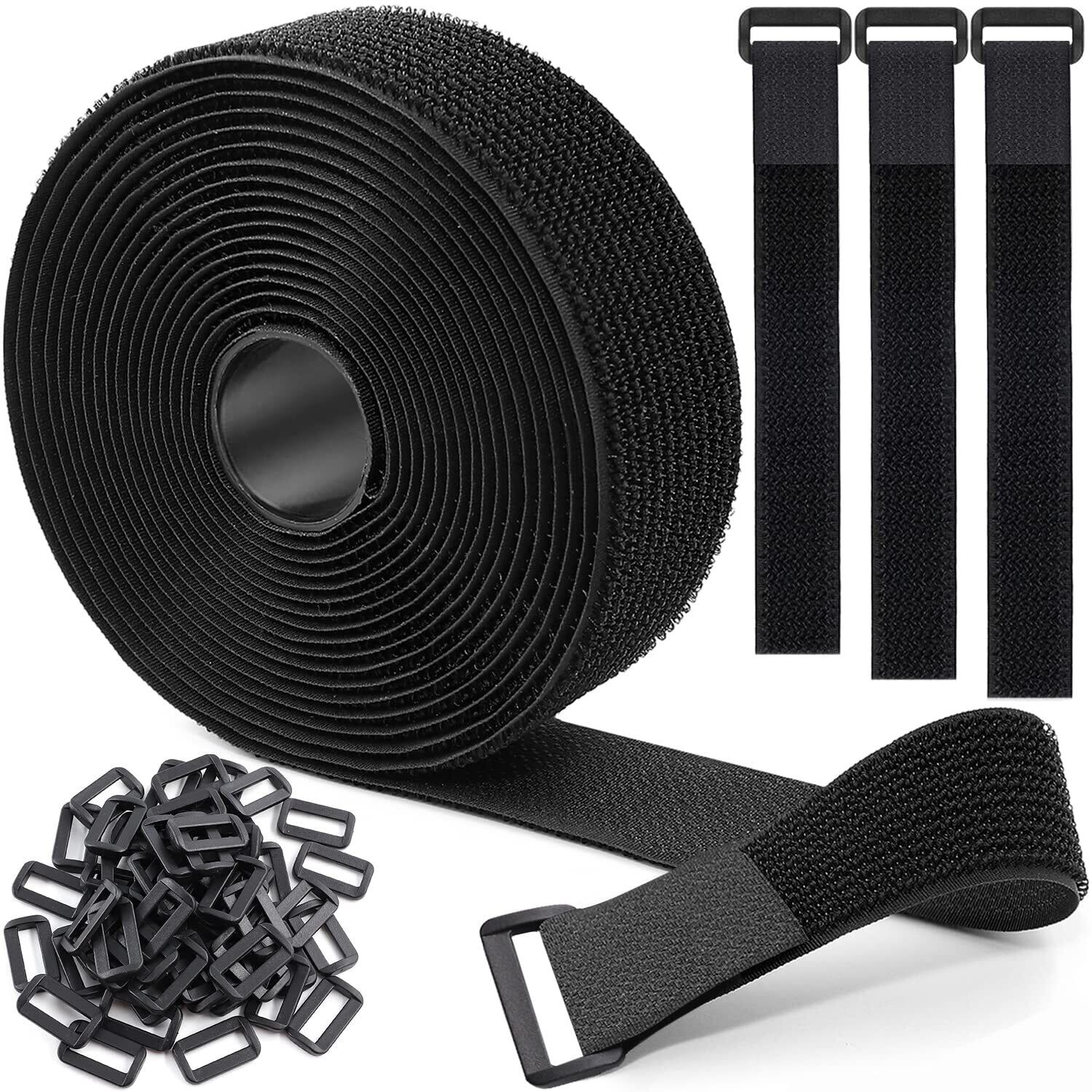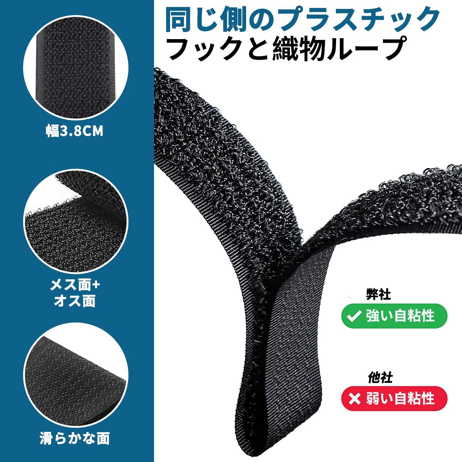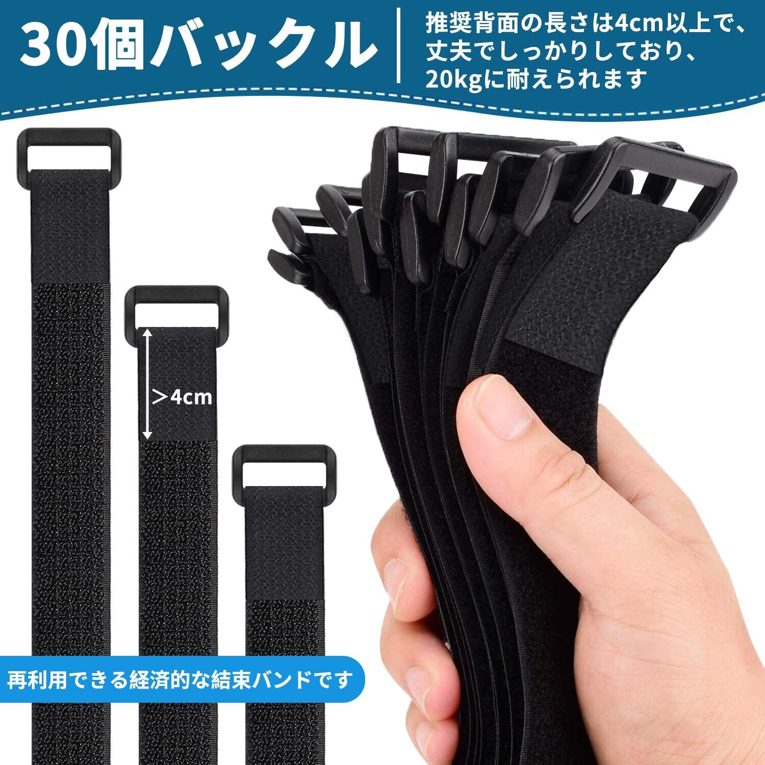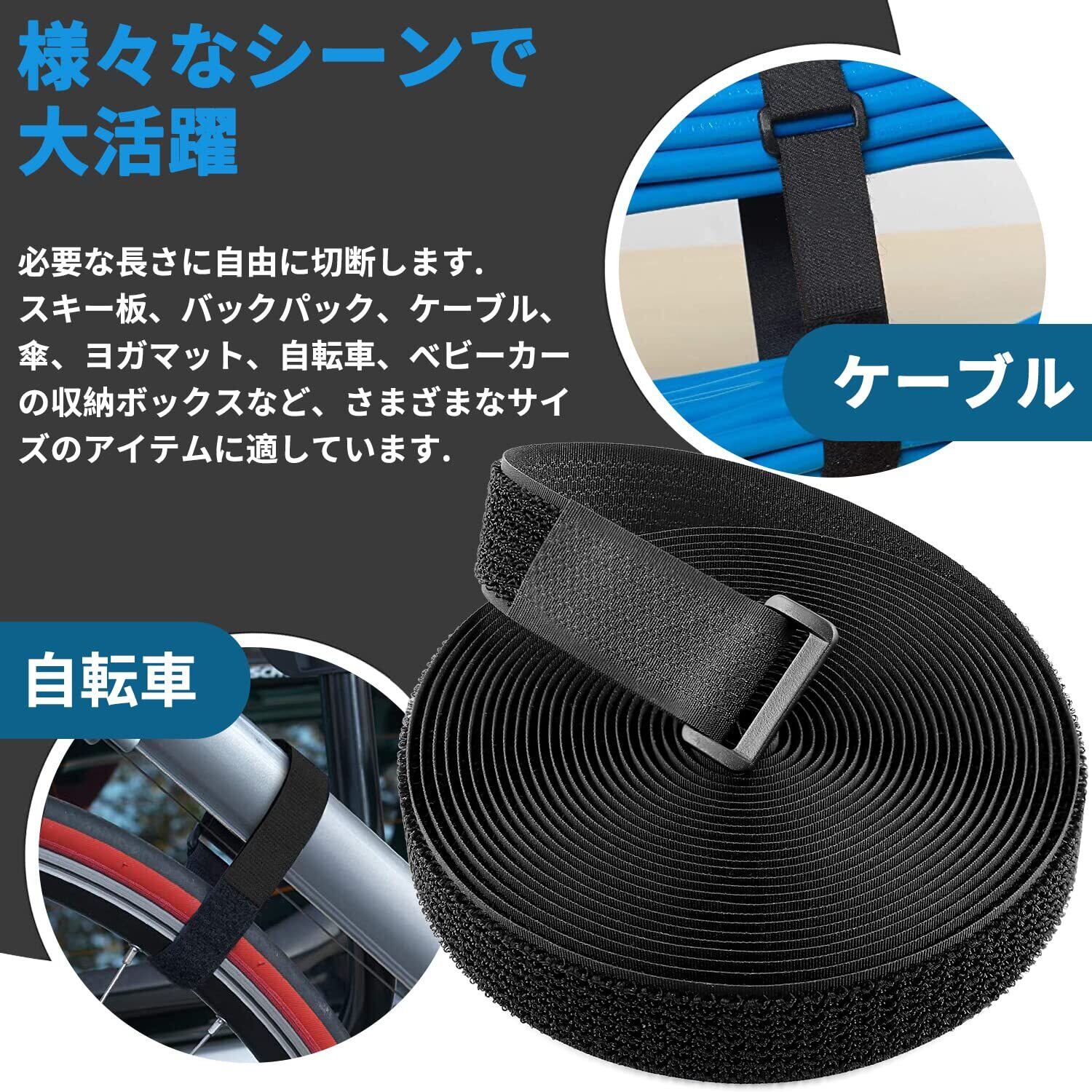 マジック結束バンド 6m 幅3.8cm+バックル 30個付き、結束テープ 荷締めベルト 固定ベルト 結束マジック 面ファスナー テープ 強力 耐熱 配線整理 自由にカット 繰り返し 荷物梱包 収納用テープ(黒色)