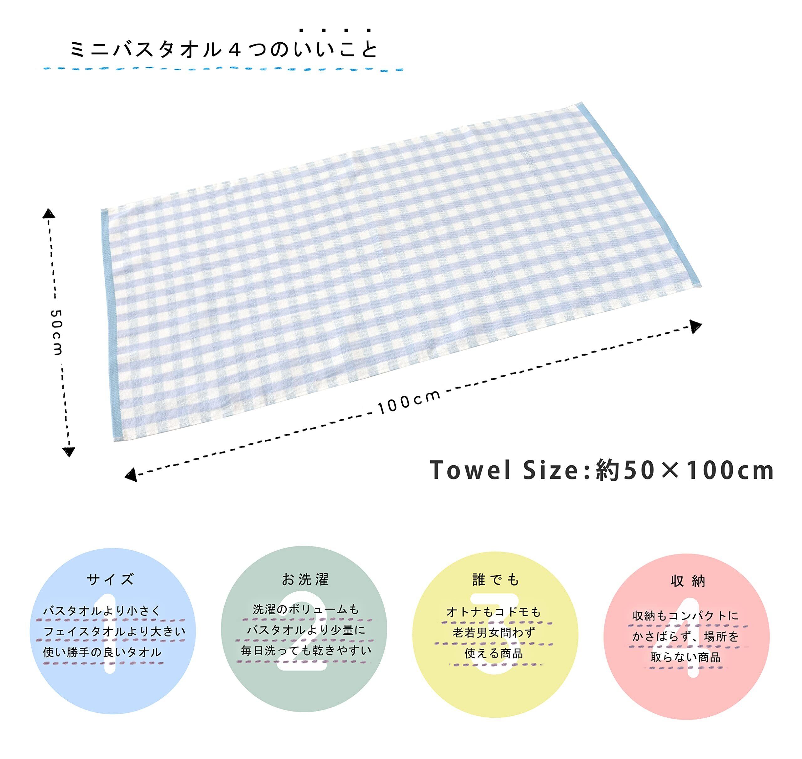 【商品仕様】 サイズ:約50×100㎝ 重量:約131g(1枚あたり) 生産国:中国 素材:綿100%