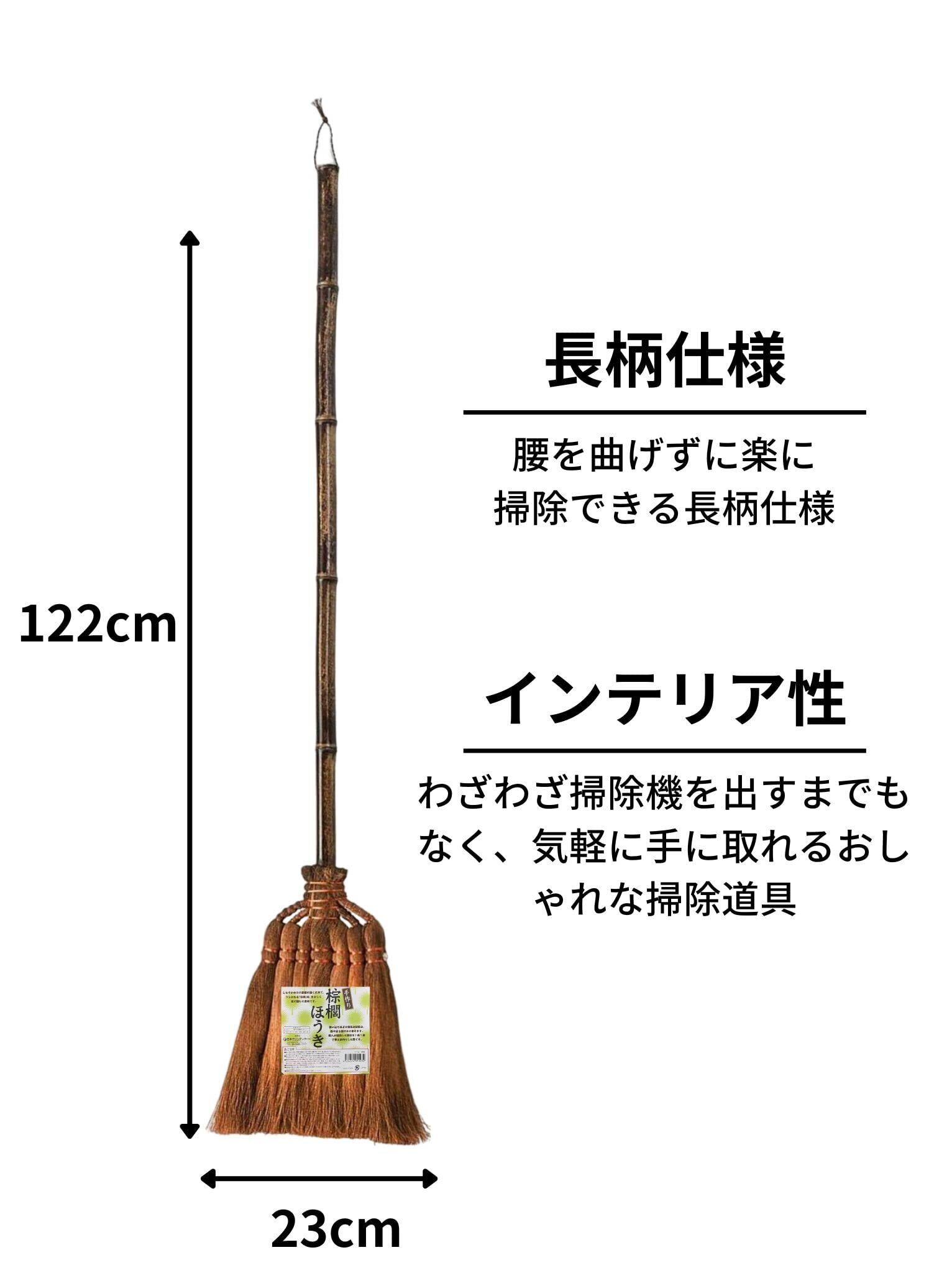 【数量限定】日本クリンテック 手作り 棕櫚ほうき長柄 7つ玉 幅23cm 全長122cm 屋内外 天然繊維 手に馴染む つや出し効果 ホコリから粗ごみの掃除