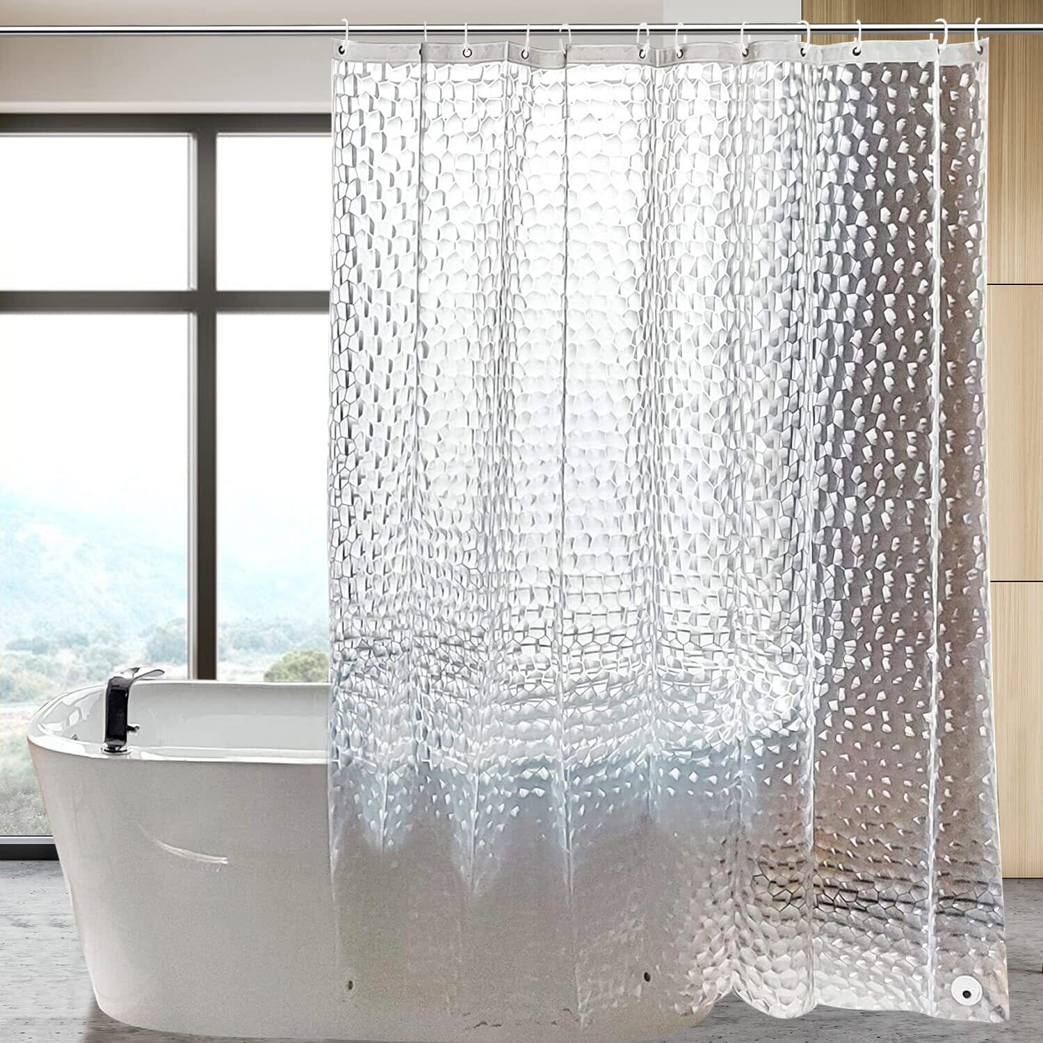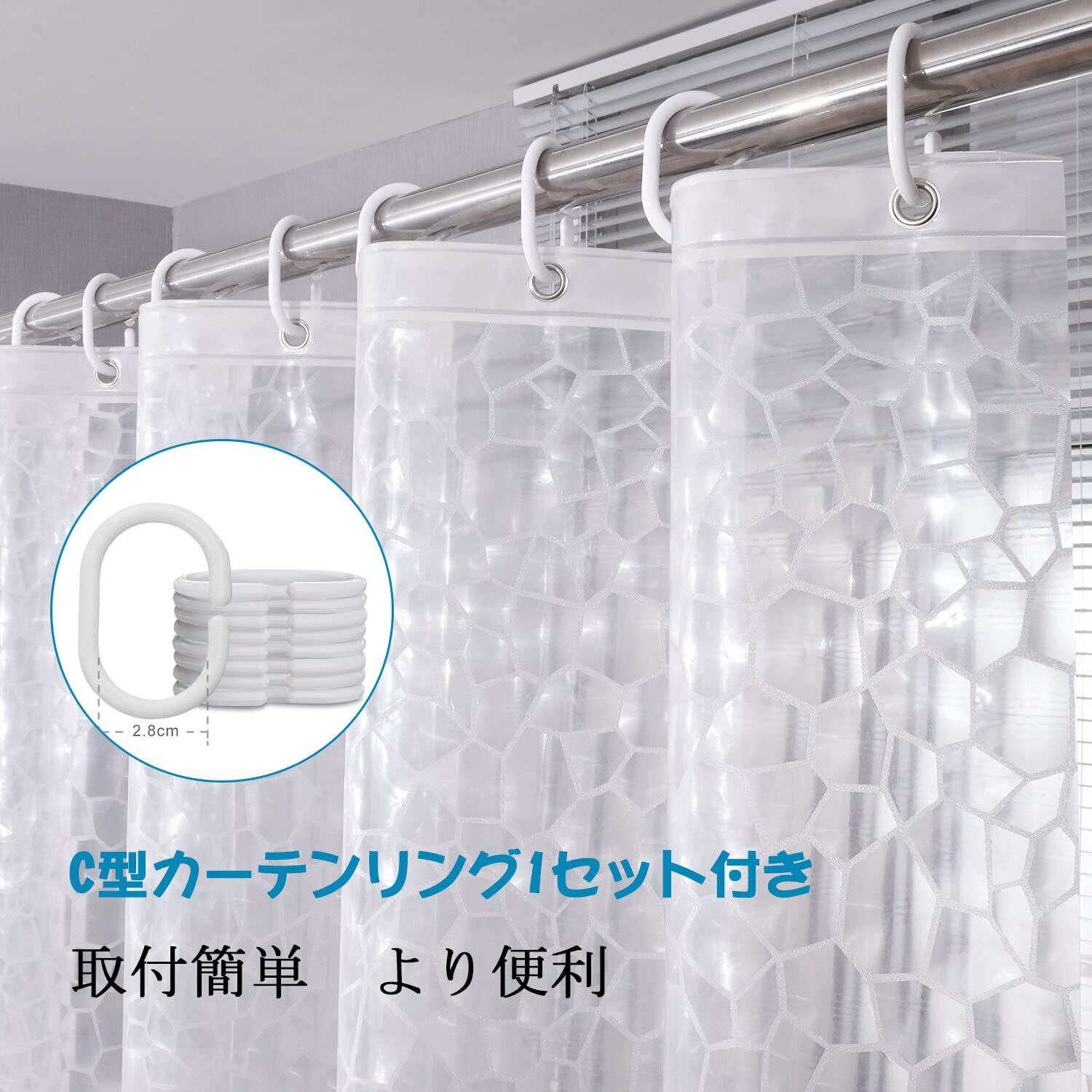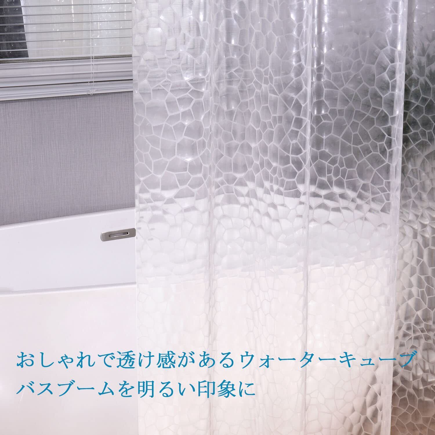 AooHome シャワーカーテン 透明 150cm丈 防カビ 透明ビニールカーテン クリア 3D 間仕切り 目隠し ユニットバスカーテン プライバシー守り フック付き 取付簡単 重り付き