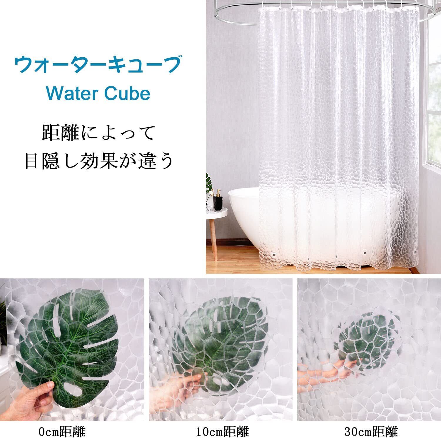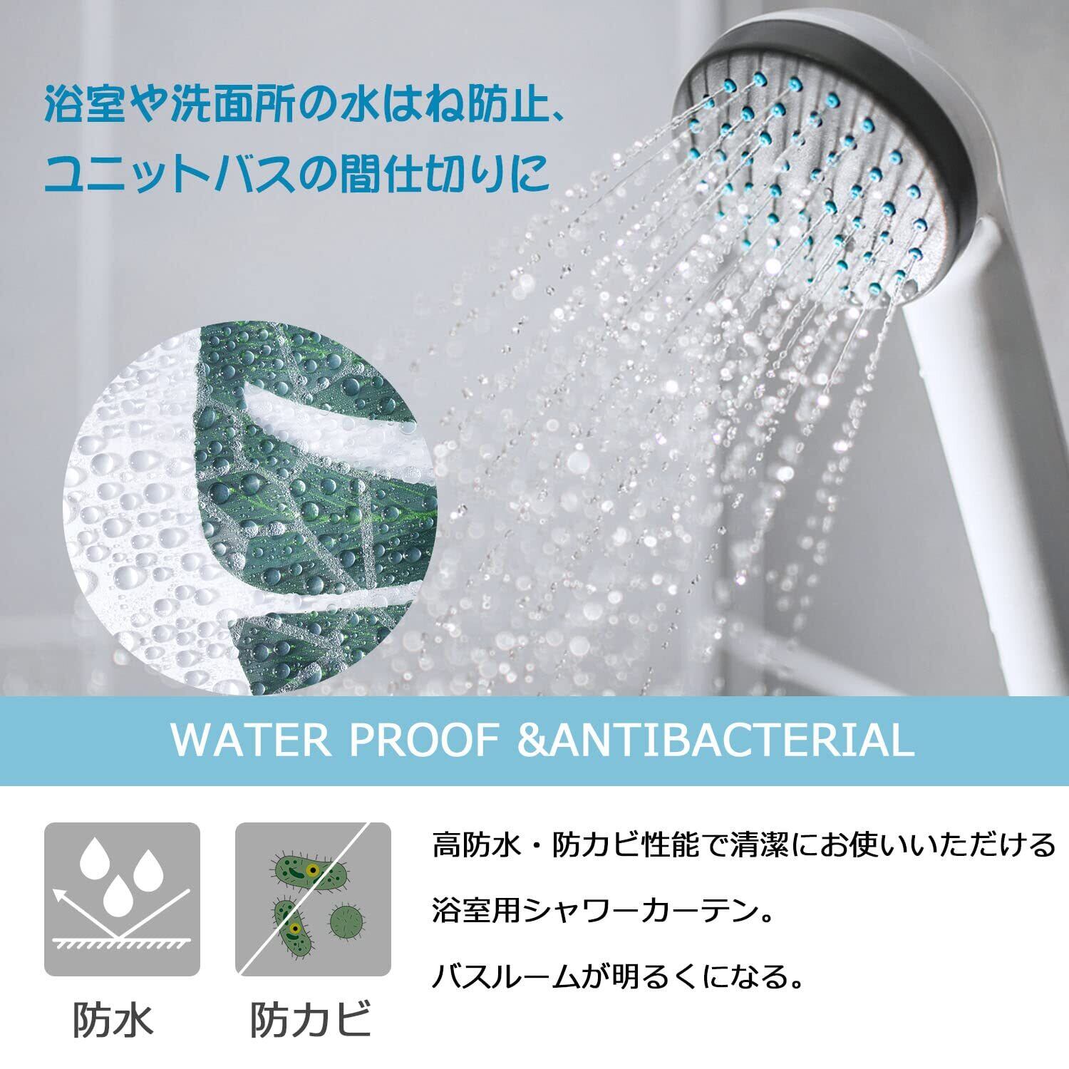 【防水防カビ加工】EVA材料を採用、防水防カビ効果がよい、いつでも衛生的で清潔に保つ、柔らかくて肌触りよい、いつも バスタイムが快適になるお風呂カーテン。 軽量、お手入れ簡単で汚れても、タオルで拭いてすぐ乾燥し、きれいになります。