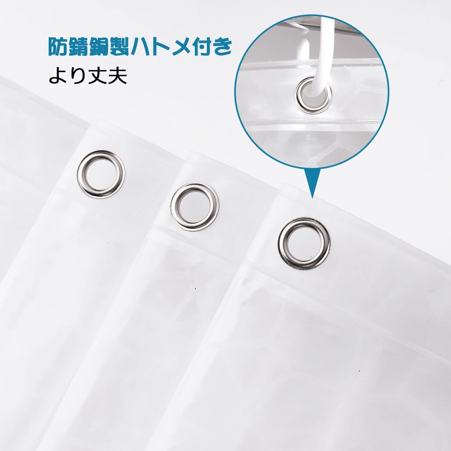 【耐久性・保温性】断熱性がよく、部屋冷房暖房ロス抑制、保温効果があり、暑い夏でも寒い冬でも安心できるクリアカーテン。 やや厚め加工、下に、加重を加えるため、ドレープ感がいいです。 シャワーカーテン上に、厚め加工、ハトメが防錆びの銅製加工で変形しにくく、丈夫で長持ちできます。
