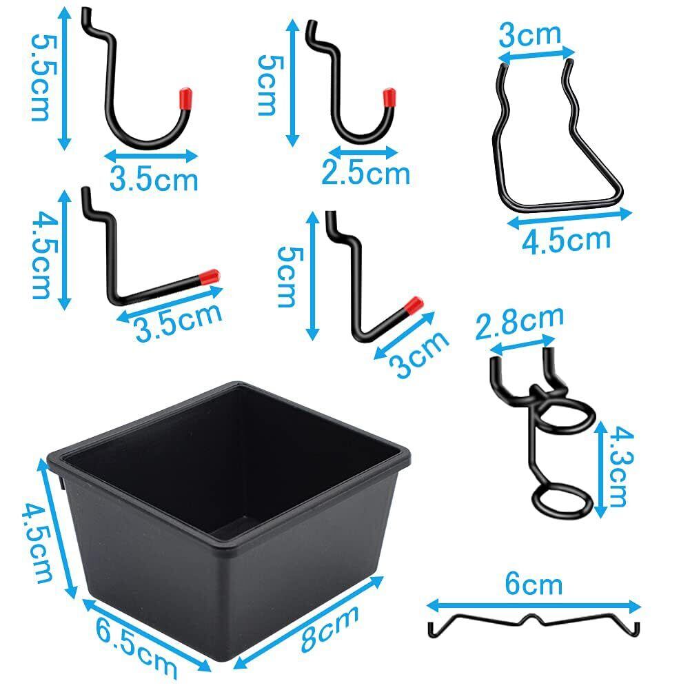 【パッケージ内容】有孔ボード用のスチール製T型フック146個セットです。 6つのパーツ収納ボックスが含まれています。