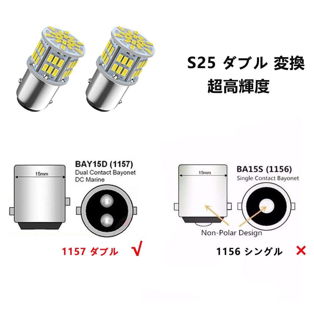 【 S25 LED ダブル 】ダブル、1157A BAY15D 1016 1034 1154 2057 2057A 2357 2357A 2357NA 2397 3496 3497 7528 ホワイト 、DC12-24V対応可,極性。マルチアプリケーション:ターンシグナルライト、バックアップリバースライト、テールライト、コーナーライトなどに使用します。