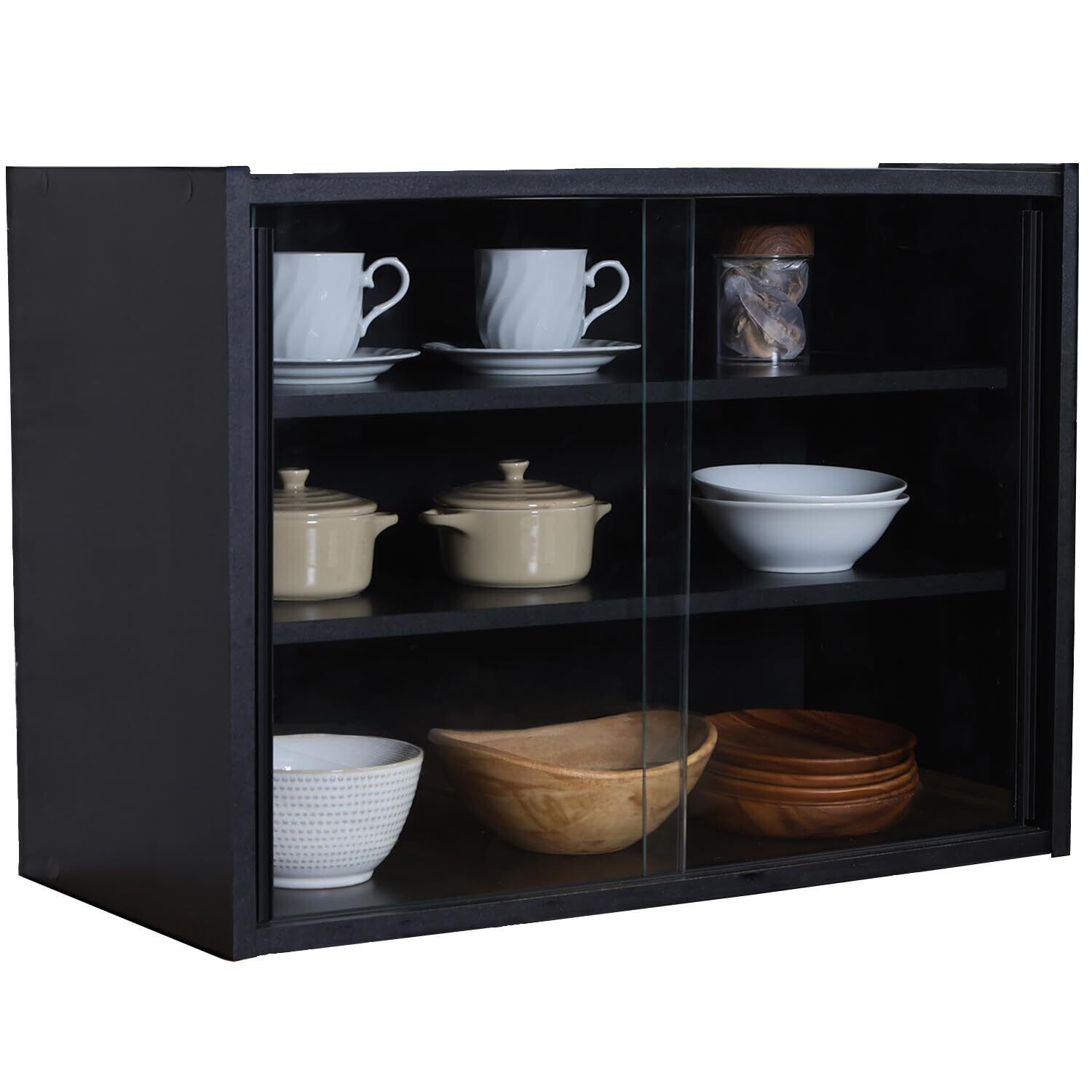 不二貿易 食器棚 キッチン収納 幅60×奥行29×高さ44cm ブラック ガラス扉 可動棚 組立品 99699 【Amazon.co.jp限定】
