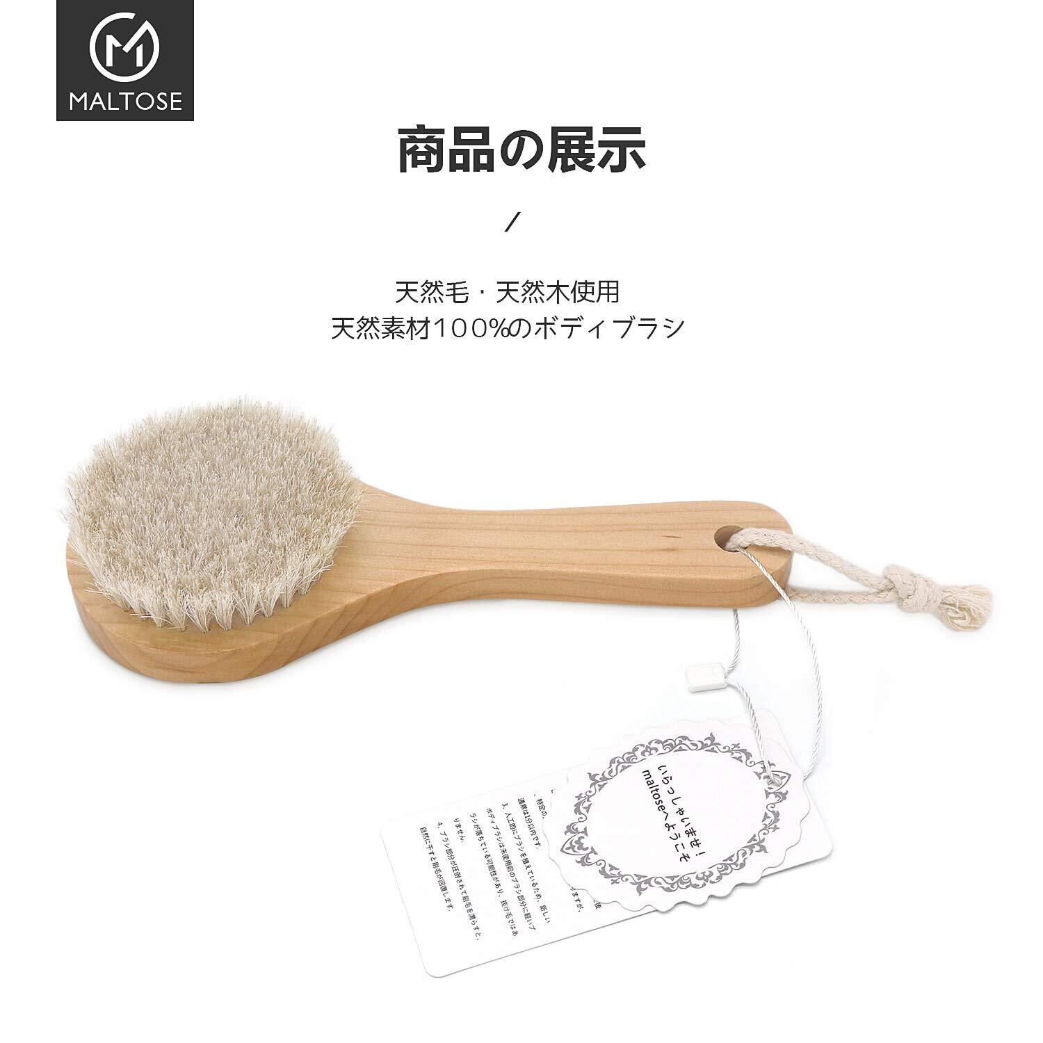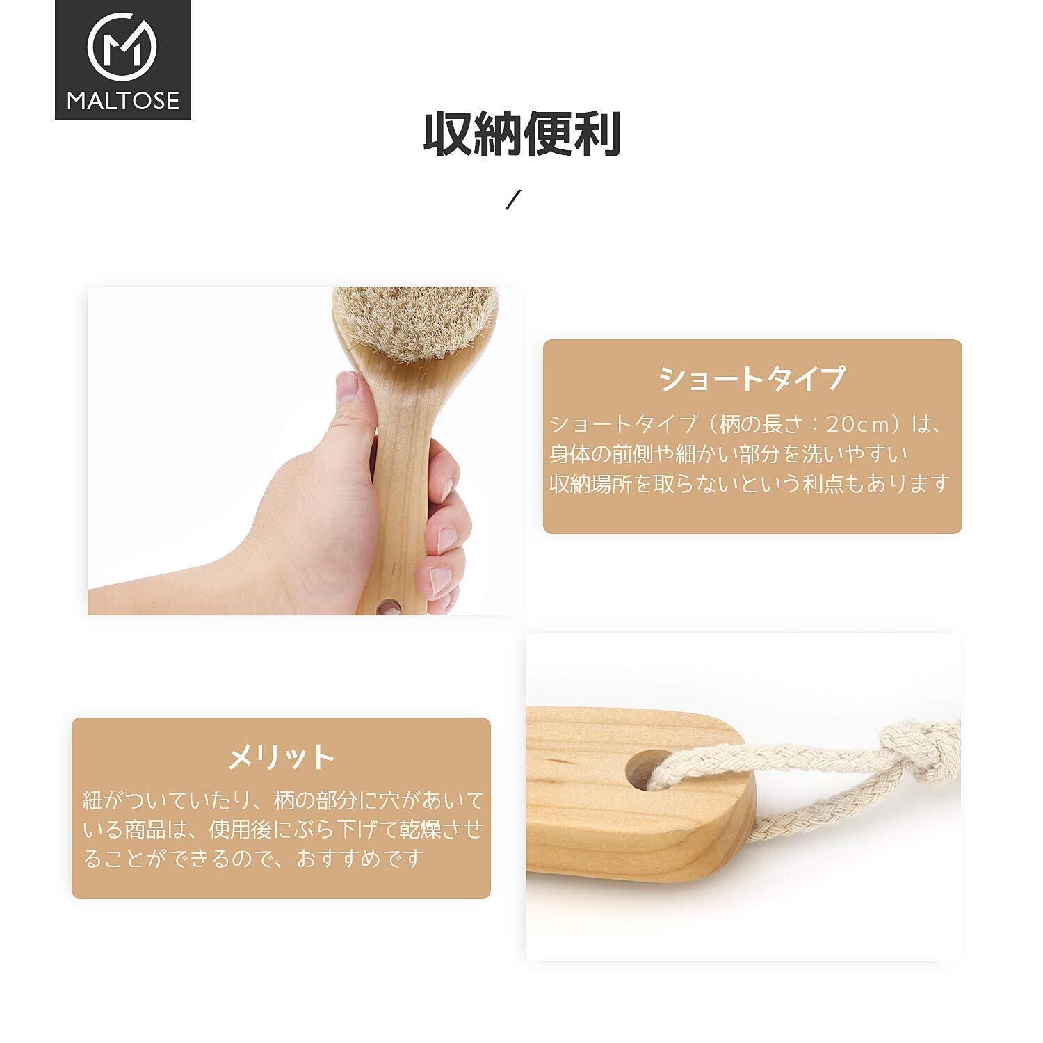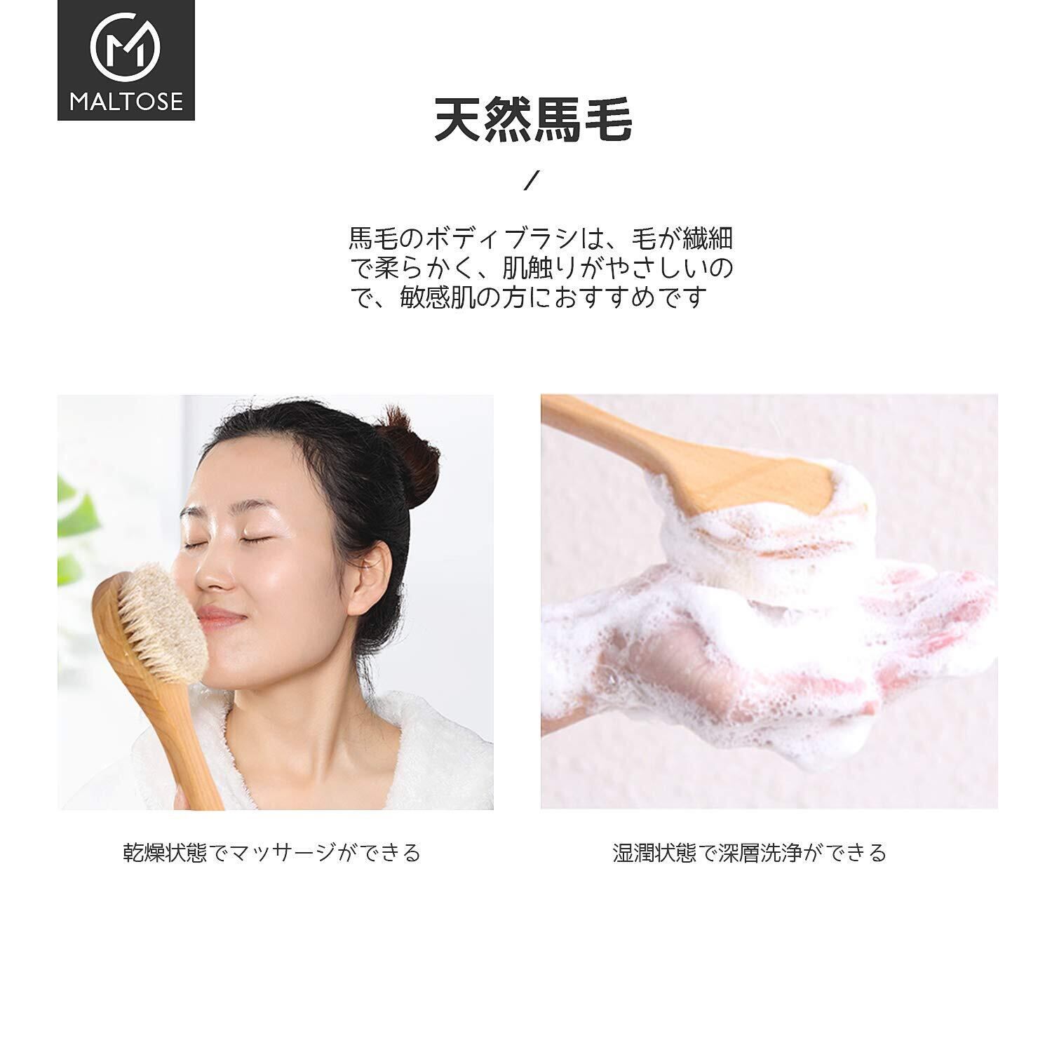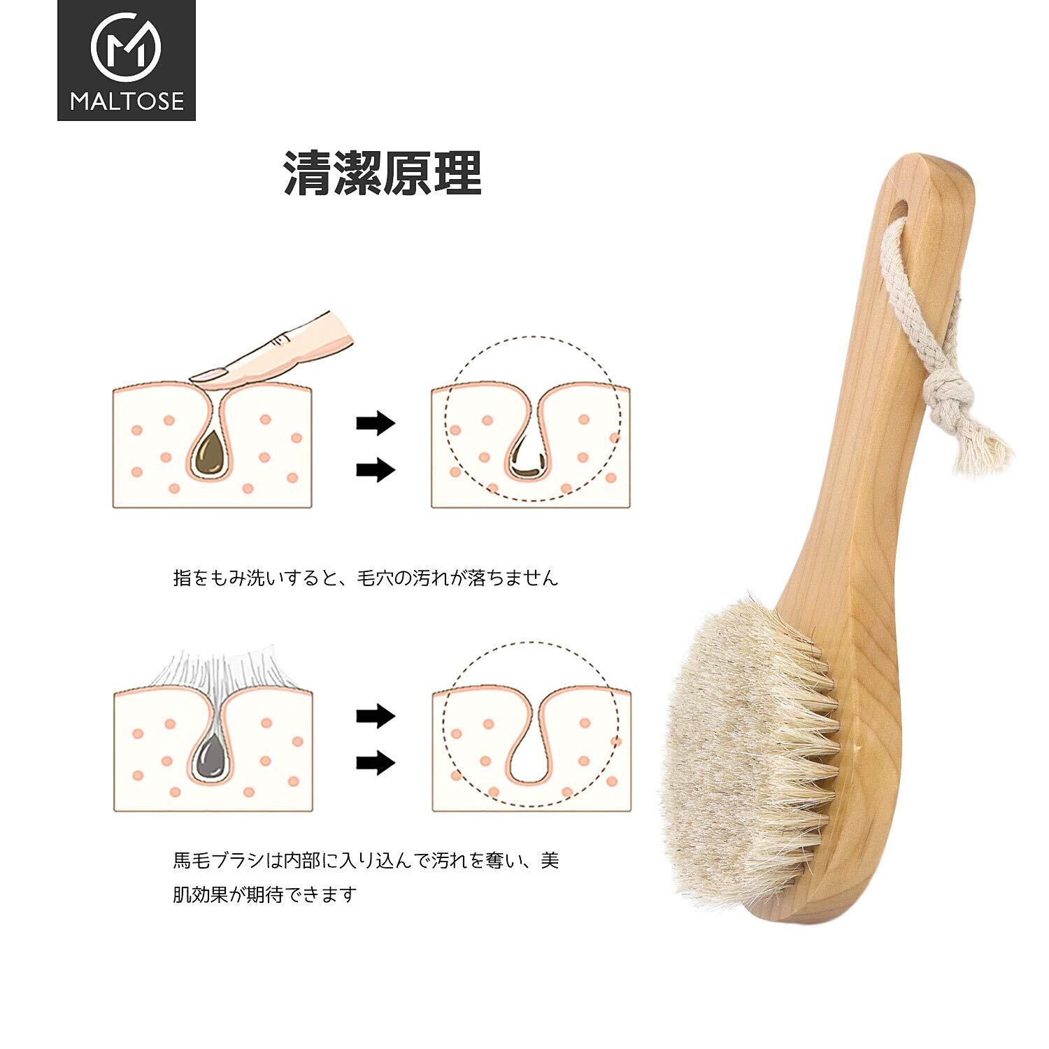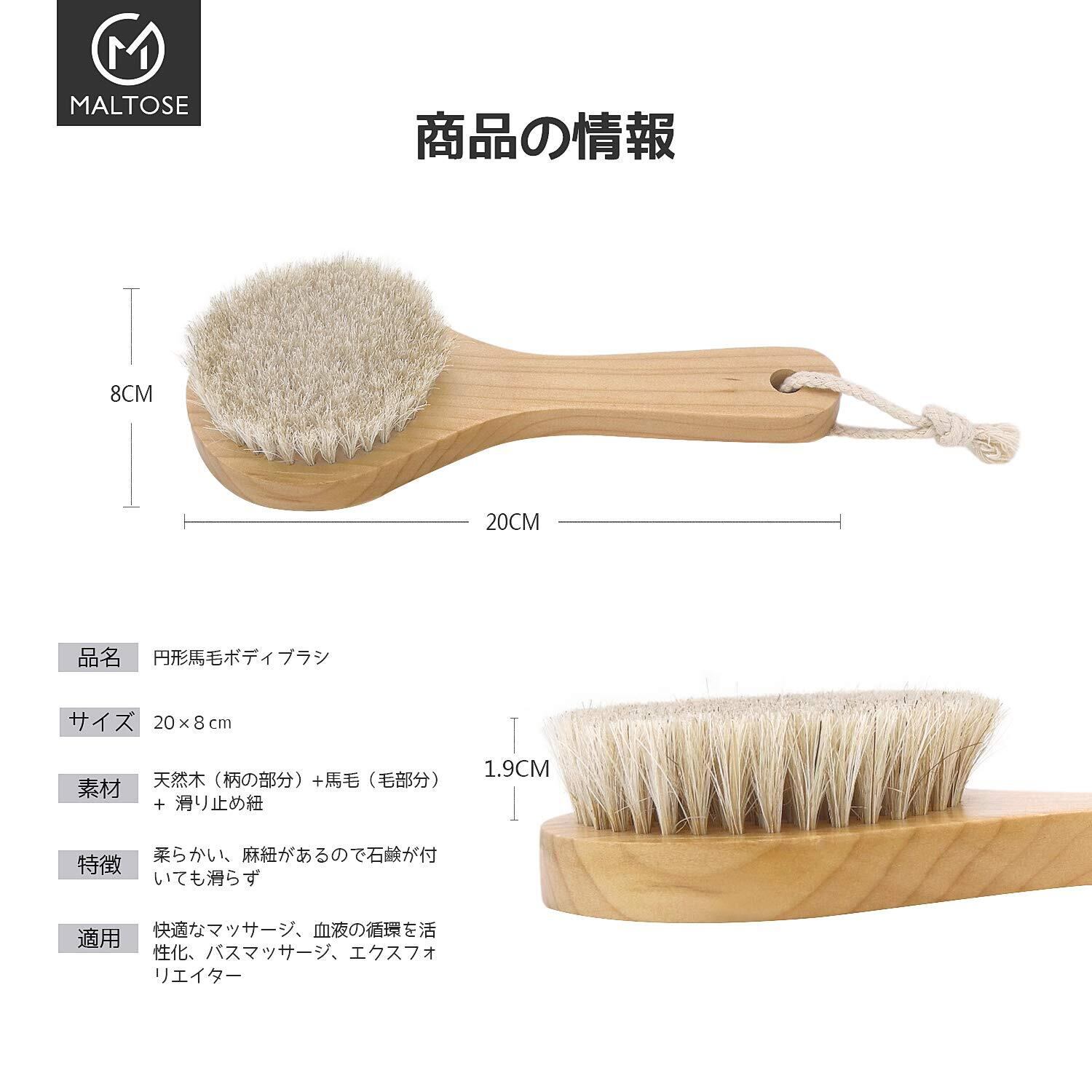 Maltose 馬毛 ボディブラシ 天然素材 短柄 背中洗い ボディ 洗う 体洗うブラシ 足を洗う お風呂用 女性