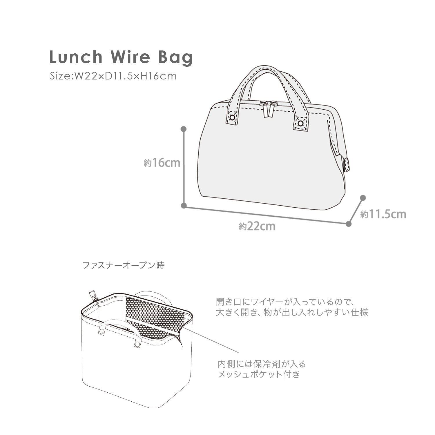【保冷ランチバッグ】お弁当にぴったりサイズの保冷保温ランチバッグです。お弁当をコンパクトに持ち歩ける便利なアイテム。開け口にワイヤーが入ったがま口仕様で、大きく開きます。バッグ自体が自立するのでお弁当の出し入れも楽に出来ます。コンパクトなサイズで、通勤や通学、普段のサブバッグとしてもお使いいただけます。