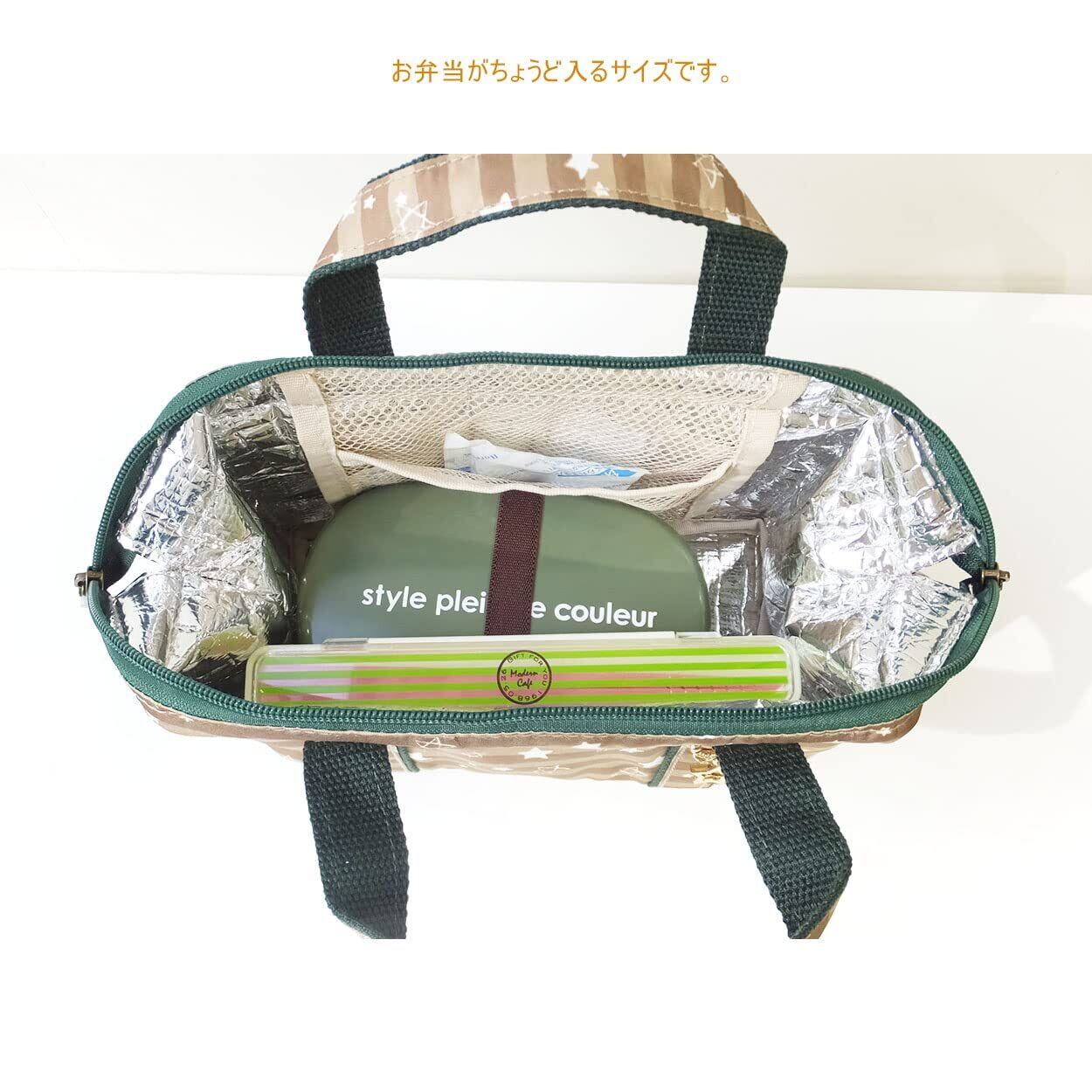 【ダブルファスナー仕様】便利なダブルファスナー仕様。端までしっかりと開閉しやすい作りです。お弁当とお箸がぴったり入るコンパクトサイズ。サブバッグとしてはもちろん、バッグインでもお使いいただけます。