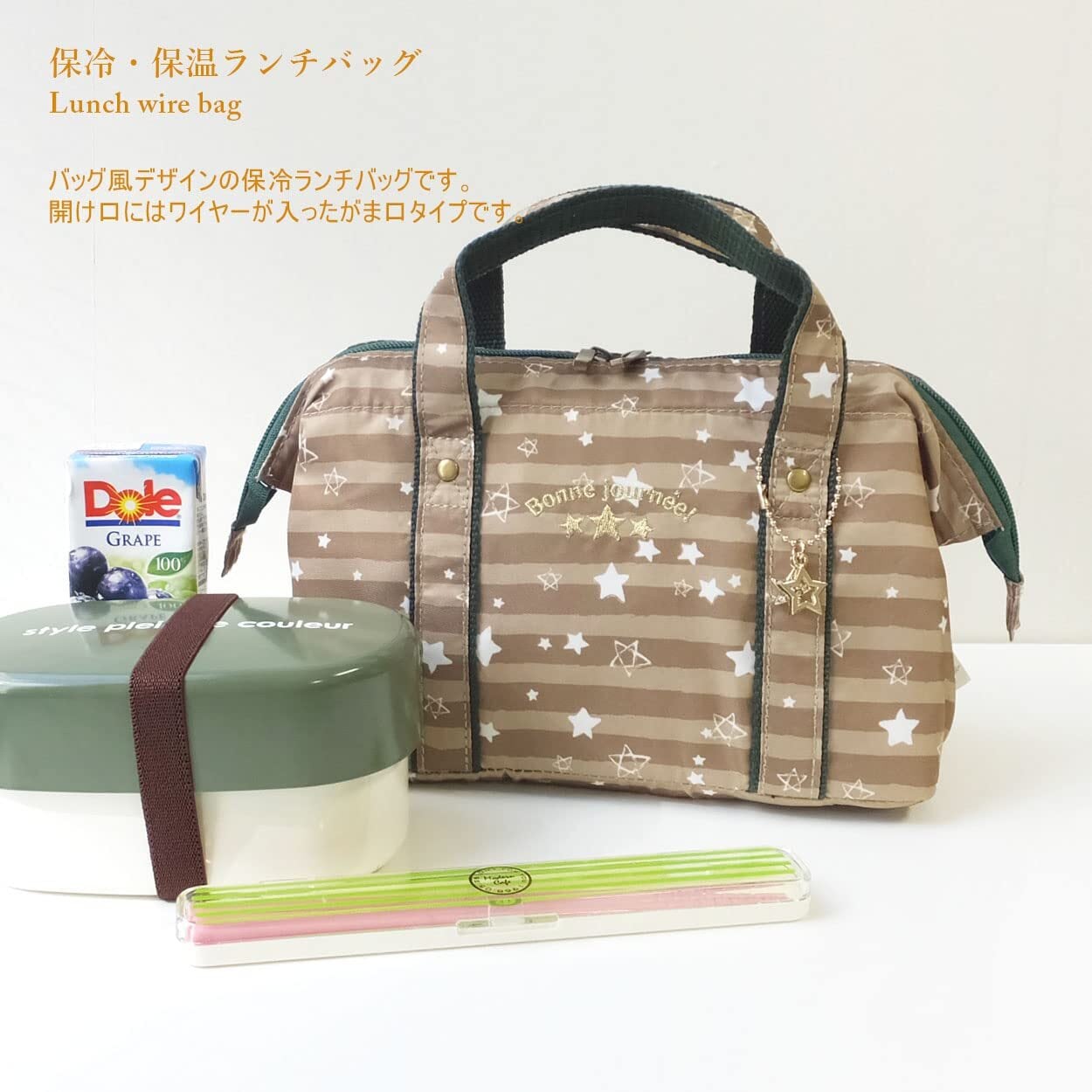 【数量限定】ランチバッグ 保冷 保温 お弁当袋 がま口 ランチワイヤー 弁当バッグ お弁当入れ 星柄 ベージュ AF5922