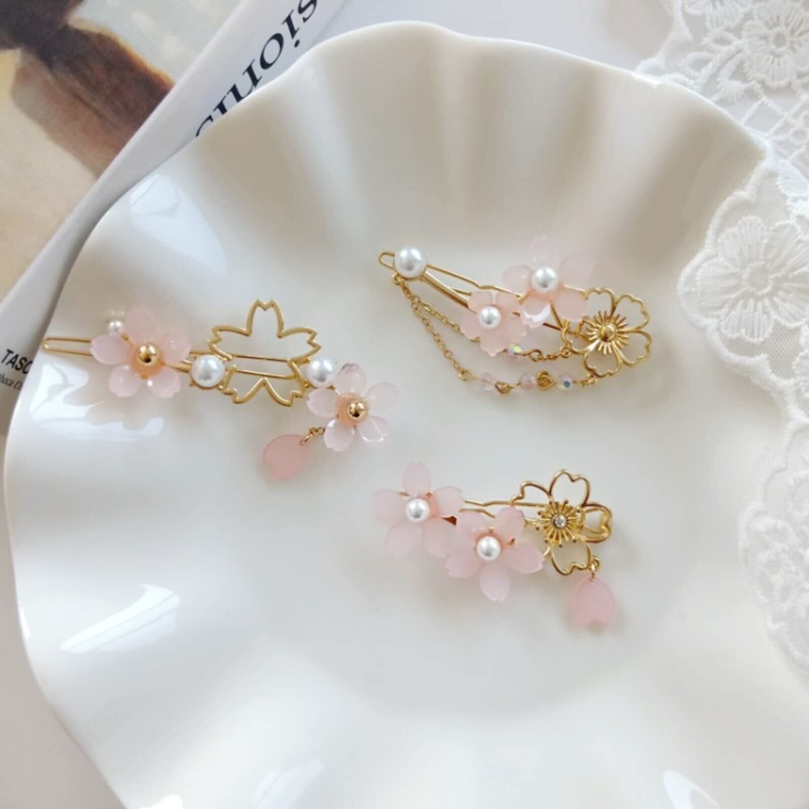 【おしゃれなアクセ】フラワーをモチーフにした人気のヘアアクセサリー。春は桜が満開の季節です。この頃、桜のアクセサリーは女の子に必要品です。2個の異なるユニークでかわいいデザインのヘアクリップは、あなたがより可愛くて魅力的に見える、焦点になるのを助けますね。