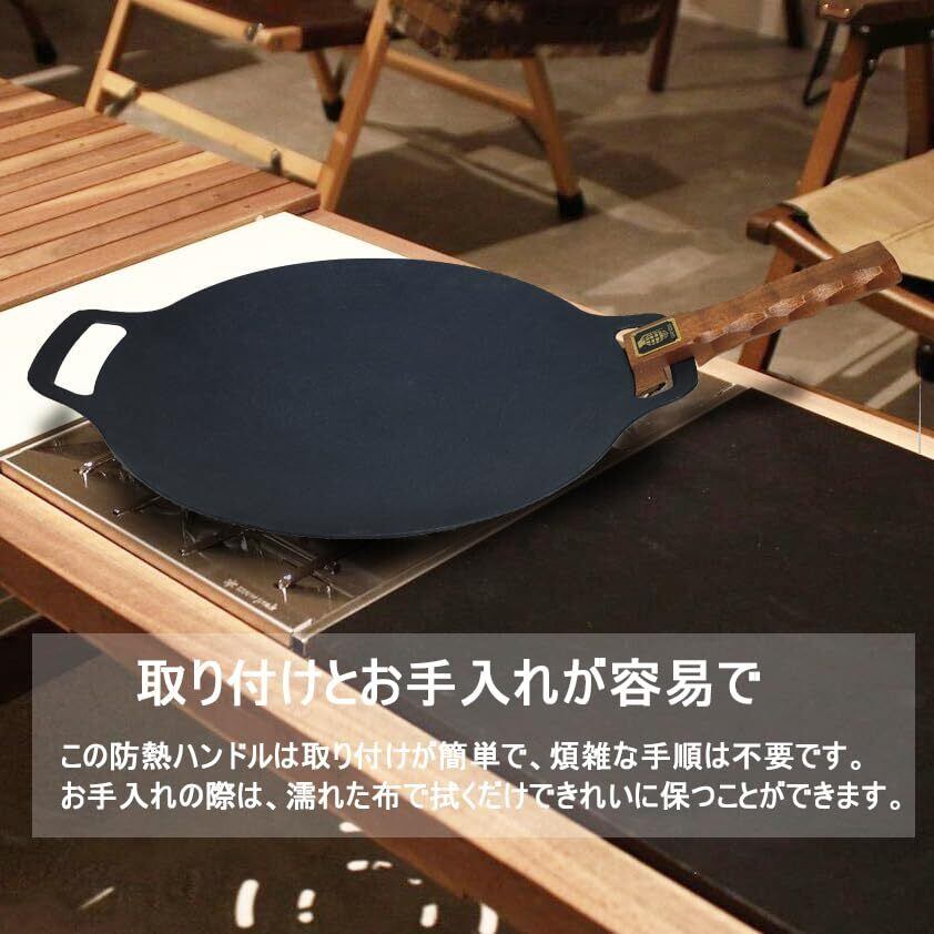 【取り付け簡単 - 注意事項必読】ネジ不要で、誰でも簡単に取り付け、取り外しできます。馴染みのある握り心地。取り付けは差し込むだけです。煩雑なステップは必要ありません。清掃時は、濡れた布で拭くだけできれいになります。定期的なメンテナンスを行うと濡れて、握り心地も良くなります。※コンロや篝火を使用する際(特に強火の時、屋外で強風の時)はできるだけ取り外し、火を消して使用または移動する際は取り付けてください。当社の焼き網の防熱ハンドルを使用すれば、やけどの心配はありません。サビリ木の優れた断熱性能により、あなたは安心して料理を楽しむことができ、美食作りに無限の楽しみを加えます。