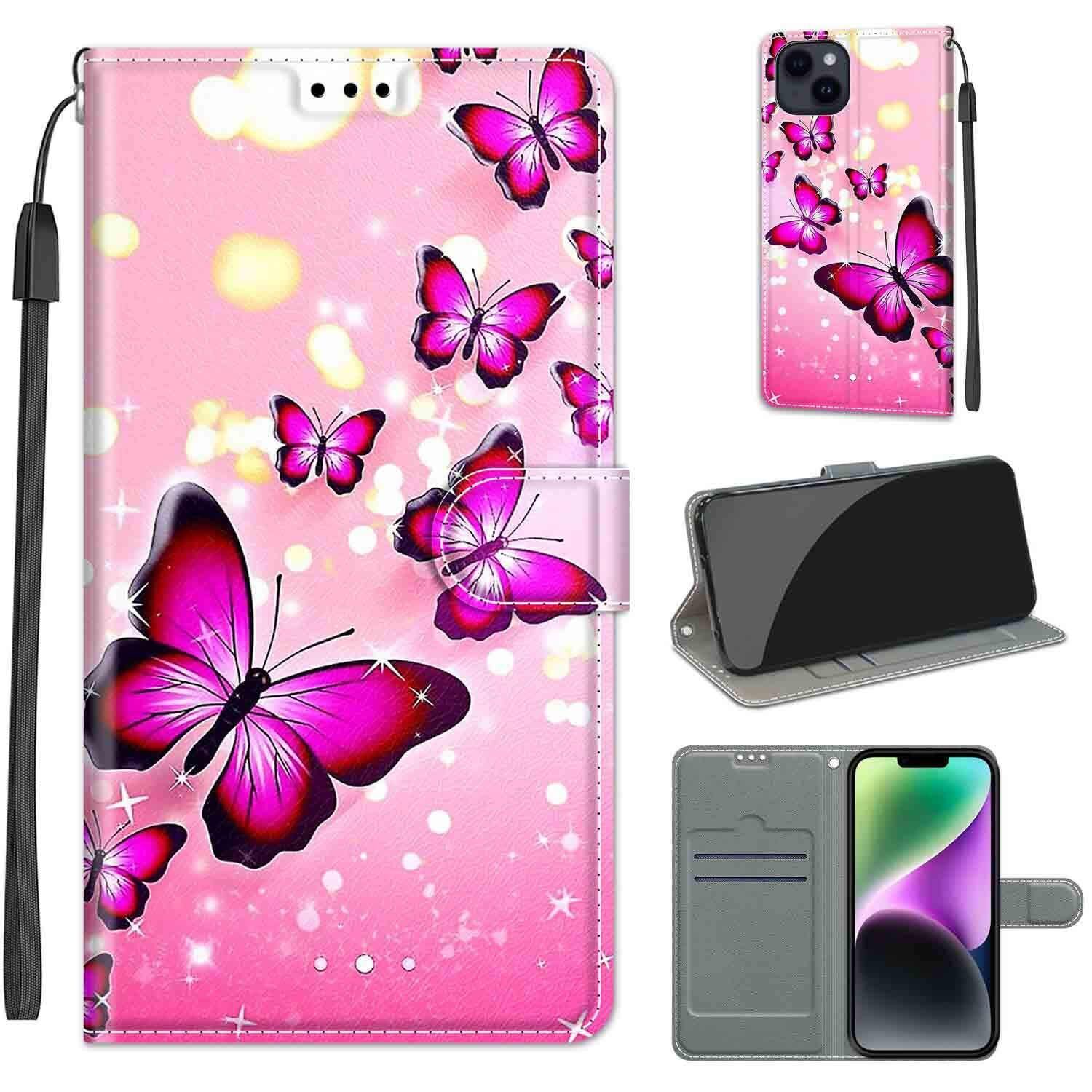【在庫セール】KENHONER iPhone 15 Plus ケース 手帳型 iPhone15 Plus 手帳型ケース iPhone 15 Plus カバー アイフォン15 プラス ケース 手帳型 カード収納 手首ストラップ付き 保護力 衝撃吸収 磁気バックル 横置きスタンド機能 ワイヤレス充電対応 アイホン 15 プラス 6.7inch (ピンクの蝶)