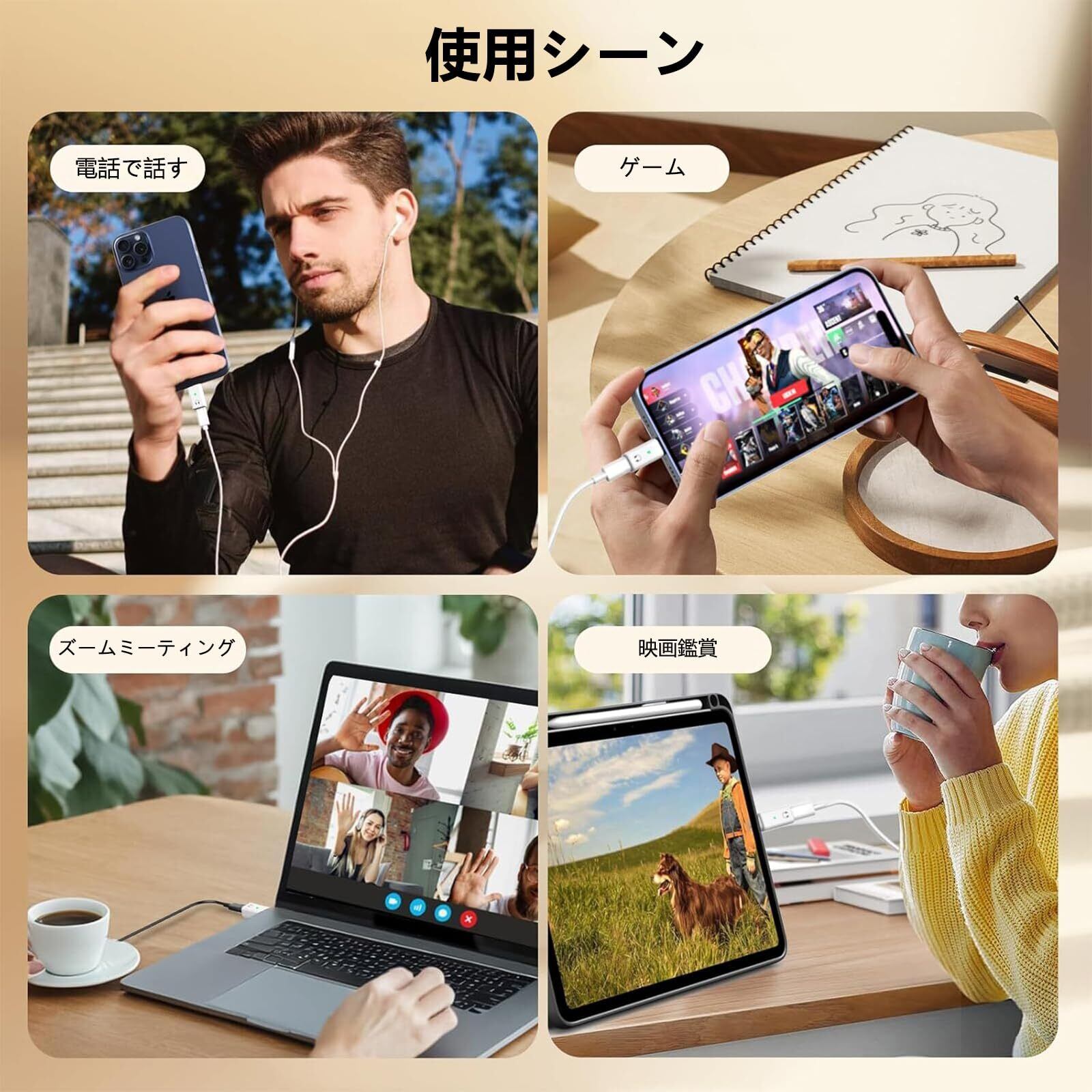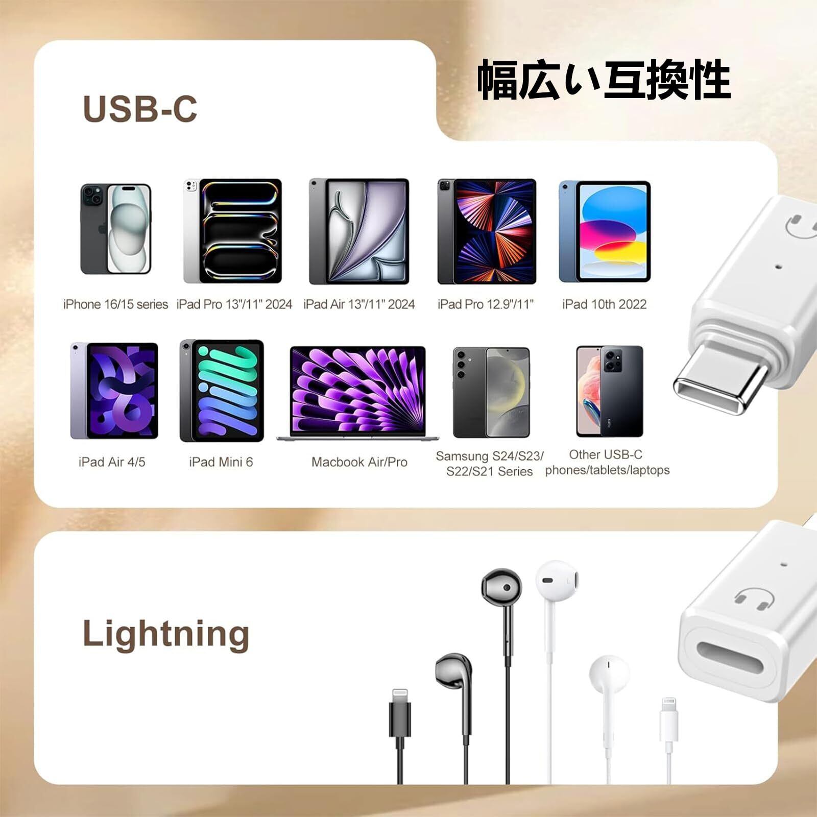 【Hi-Fi音質 ・音楽・通話・音量調節対応】96KHz/16bit オーディオ出力を提供し、高レート、高解像度、騒音減らし、音声の損失をできる限り最小限に抑え。旧世代の純正Light-ningヘッドセットで、USB-Cデバイスからクリアで詳細なサウンドをお楽しみください。いつでもどこでも高品質で豊かなサウンドがあなたを包みこもう。その上、音楽再生/一時停止/前へ/次へ/電話応答/電話拒否/音量調節などすべての操作も対応できます。(ご注意:必ずApple純正のLight-ningヘッドセットをご使用ください。純正品以外のLight-ningヘッドセットを使用すると、本製品と互換性がない場合があります。)