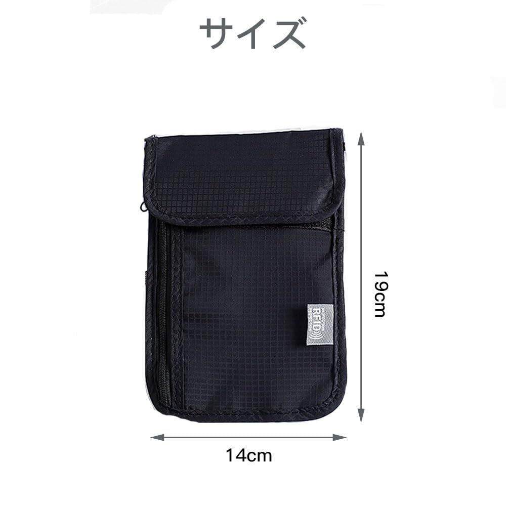 【サイズ】14cm×19cm 。【重量】70g。 【素材】ナイロン、RFID遮断素材。【カラー】ブラック。