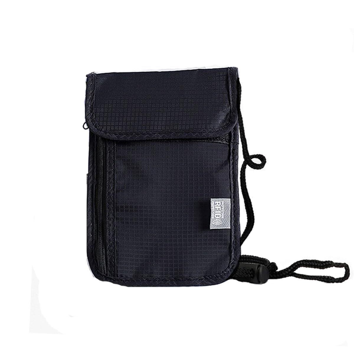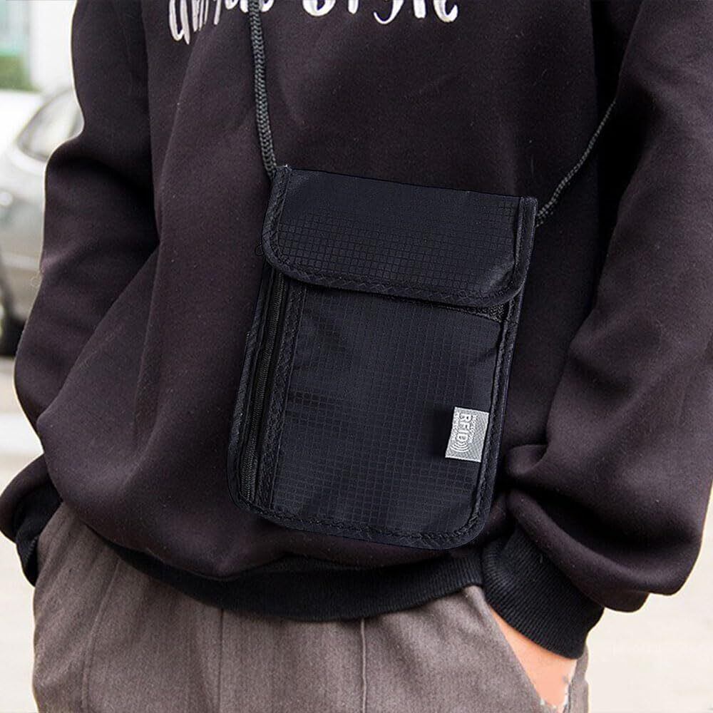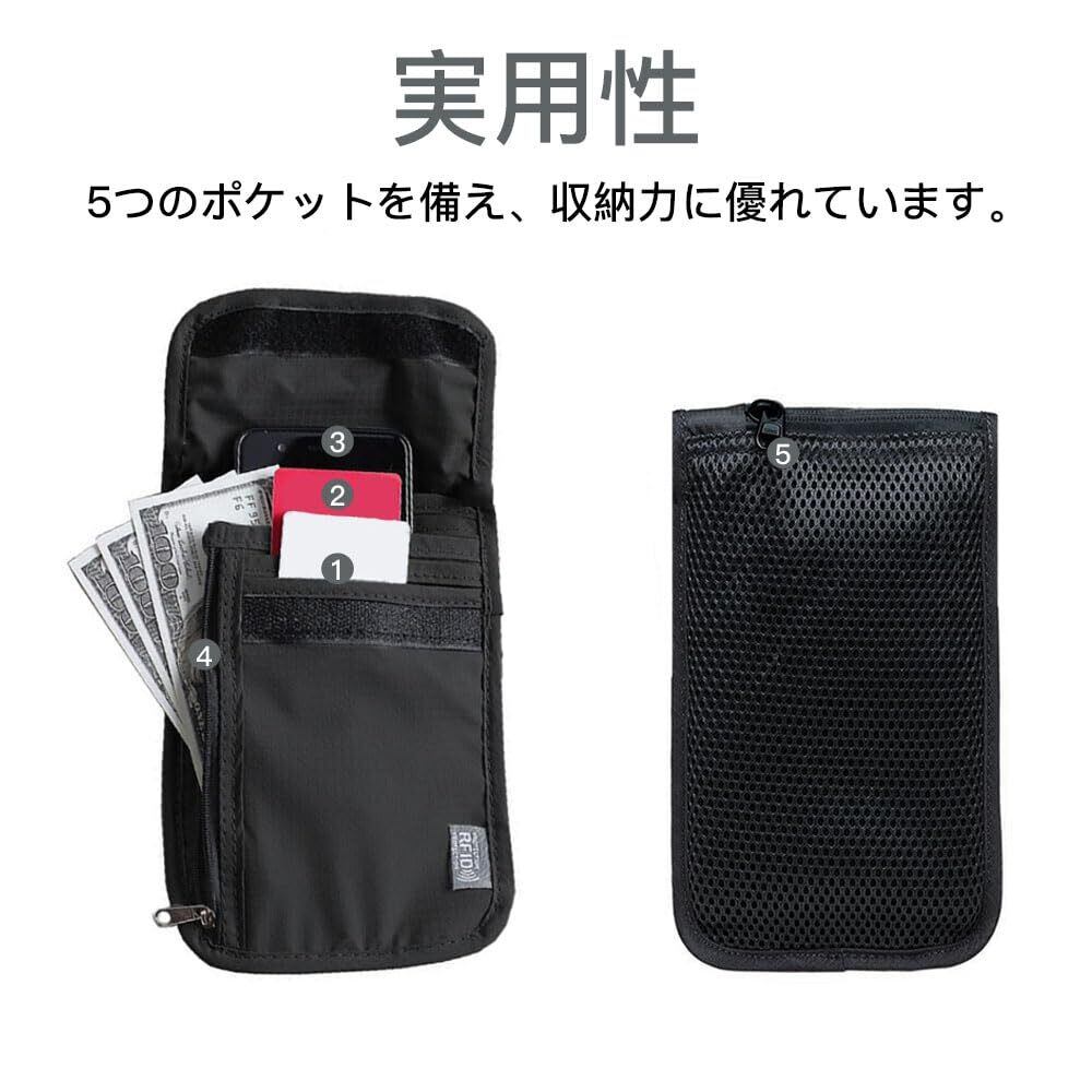[LOYELEY] パスポートケース RFID スキミング防止 磁気防止 セキュリティポーチ パスポートバッグ ネックポーチ IDカードケース 防水 軽量 ペン 鍵 カード 小銭 航空券 紙幣 スマホ 収納可 出張 家庭旅行 海外旅行 男女兼用 (ブラック)