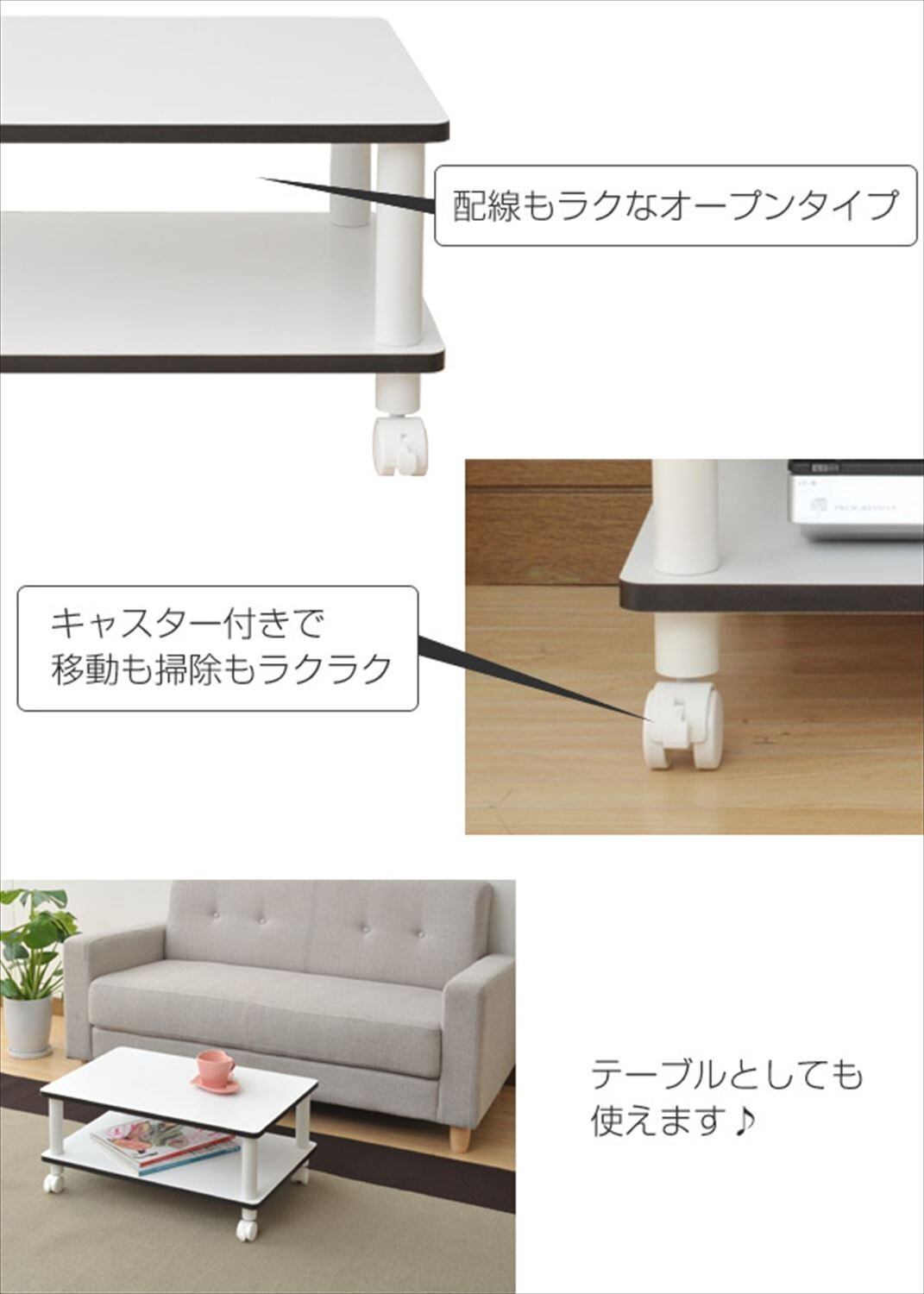 ●組立品です●組立時間:約10-20分●どこでも使えるマルチボード●キャスター付きで移動も掃除もラクラク●工具不要の簡単組立●天板・棚板耐荷重:約10kg●薄型23Vまでに対応