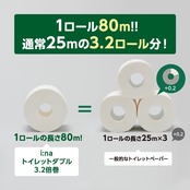 ●1ロール3.2倍巻のたっぷり長持ち。 ※1ロールの長さ25mとの比較。 ●トイレットペーパーの交換や保管スペー スを減らせます。 ●握りやすく、開けやすい取っ手形状。 ●ふっくら巻き取り技術で、長く巻いても柔 らかな肌触りを実現。 ●華やかなフローラルの香り。 ●通常巻24ロール分以上※の大容量。 ●パルプ100%。