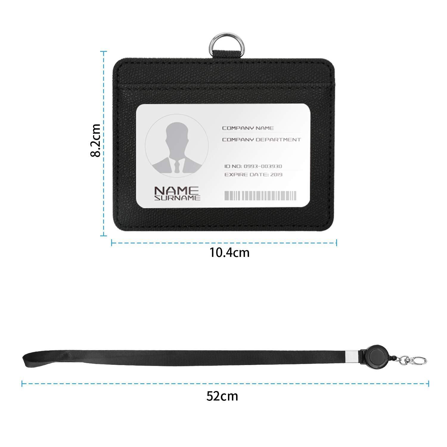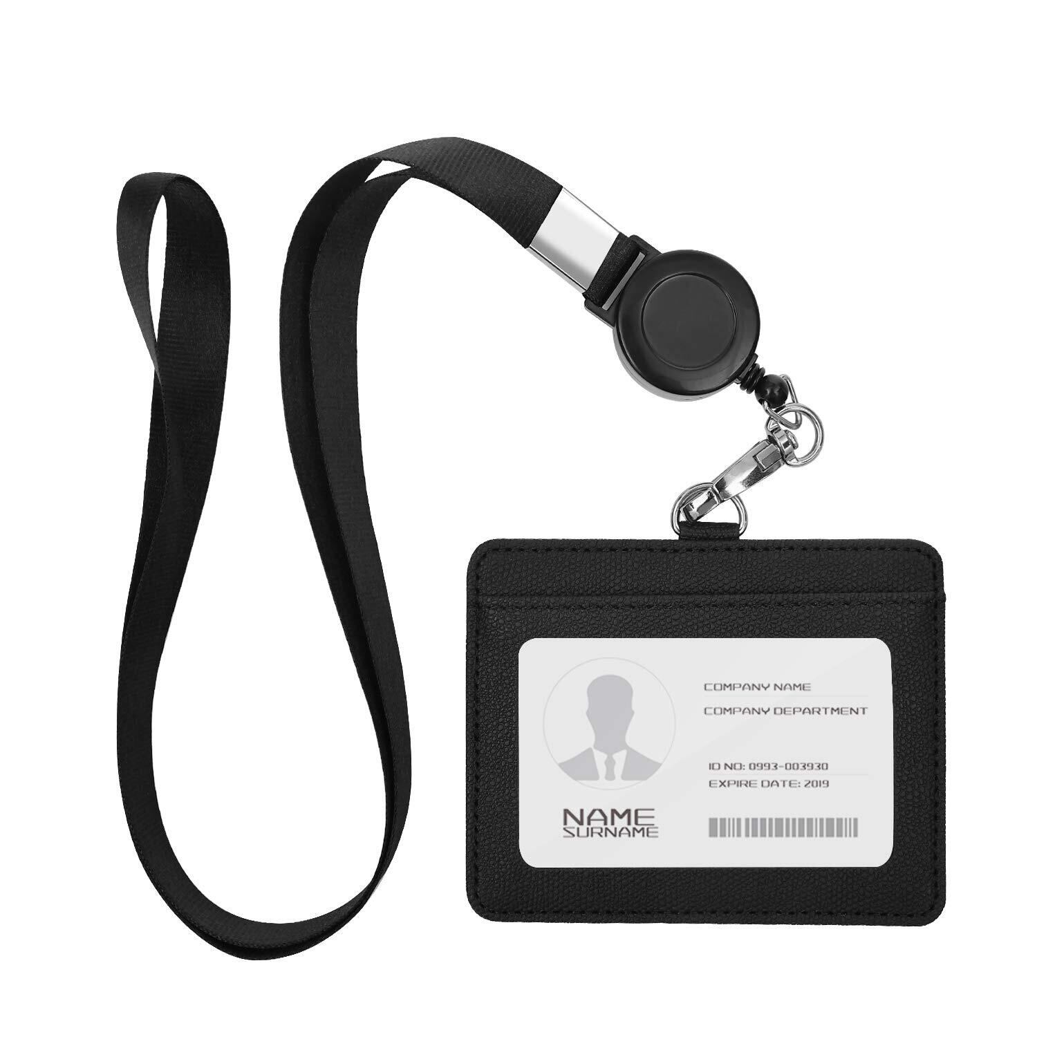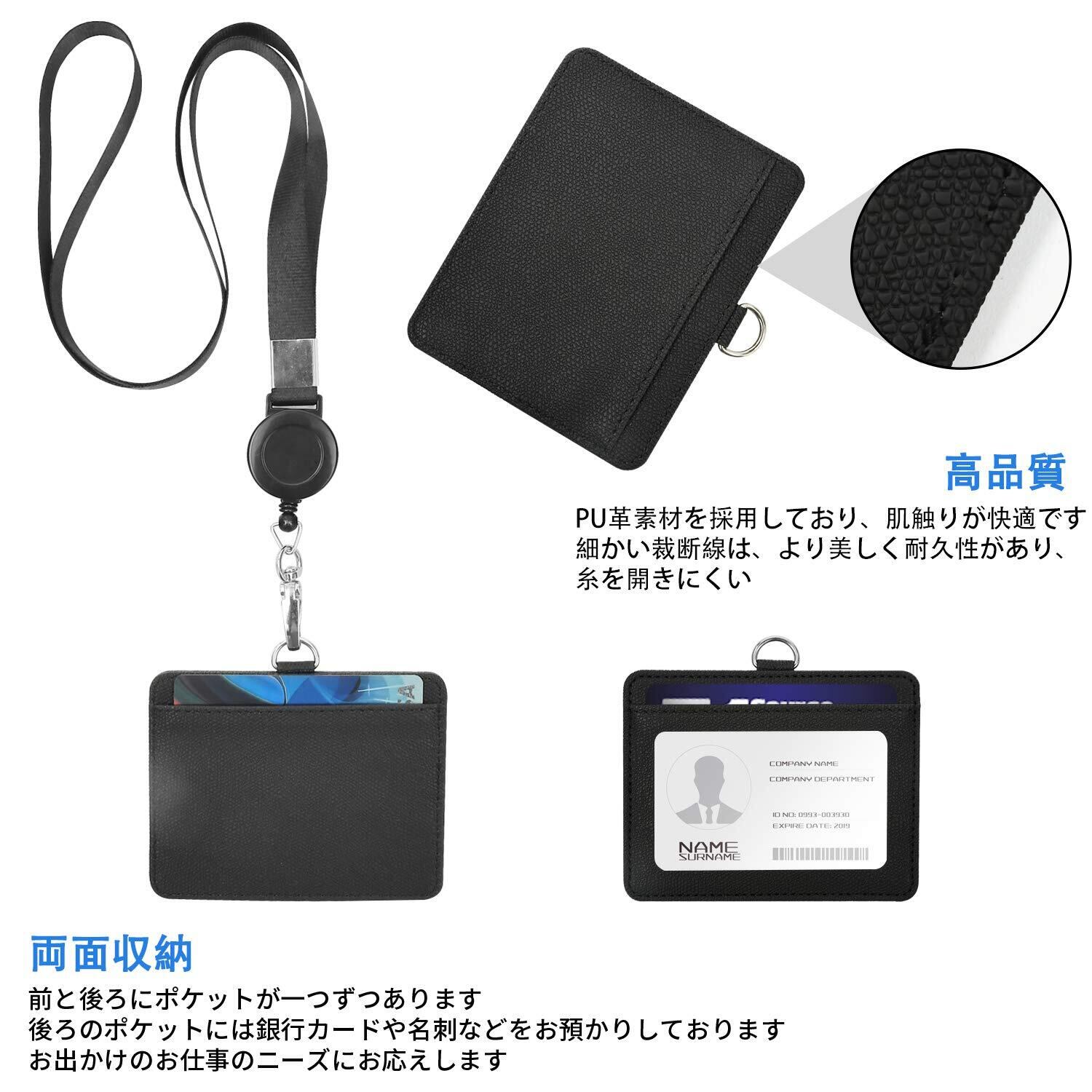 SUGURE IDカードホルダー ネームホルダー 名札ホルダー PU 横型 社員証 カードケース メンズ 防水 伸縮リール式 ネックストラップ 吊り下げ パスケース 定期入れ 通勤 通学 男女兼用 名刺入れ (横+ブラック)