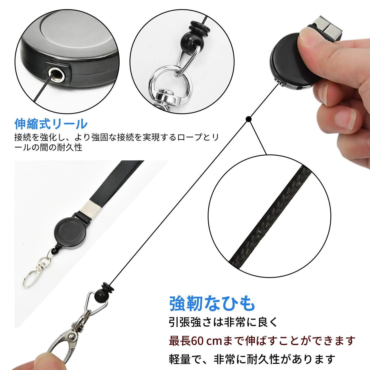 【特価セール】SUGURE IDカードホルダー ネームホルダー 名札ホルダー PU 横型 社員証 カードケース メンズ 防水 伸縮リール式 ネックストラップ 吊り下げ パスケース 定期入れ 通勤 通学 男女兼用 名刺入れ (横+ブラック)
