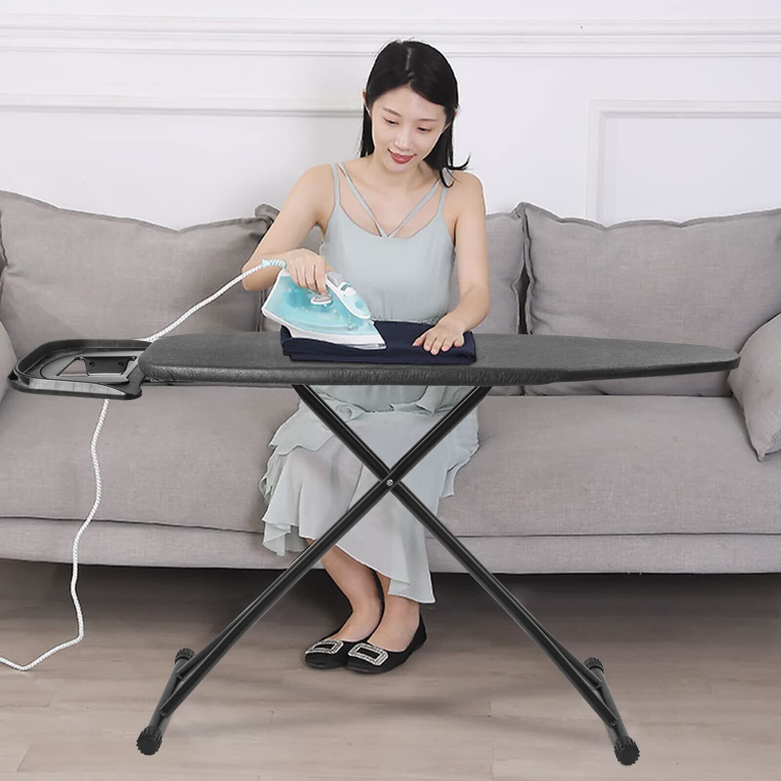【引き出式アイロン置き台付き】アイロン掛けないとき、アイロン台置き台に載せる。【便利】脚は折りたためます,シンプルな形で収納場所にも困りません。