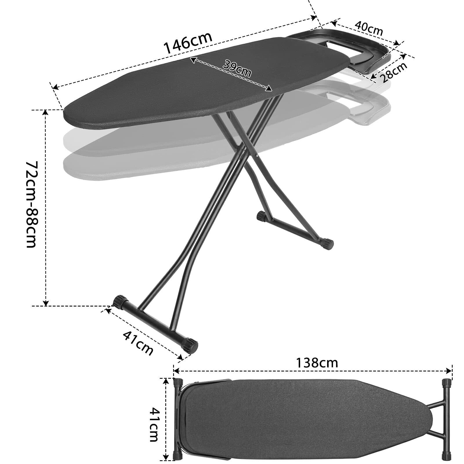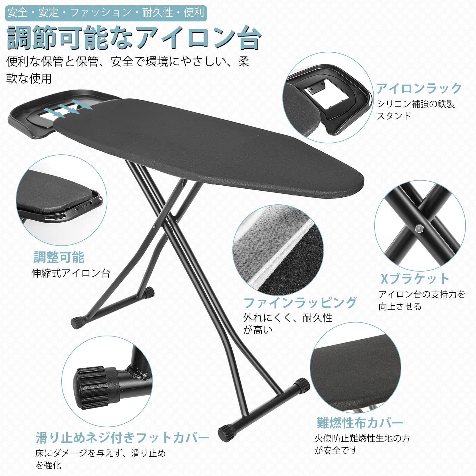 AKOZLIN スタンド式 イロン台 引き出式アイロン置き台付き 折りたたみ 6段階高さ調節 幅120×奥行38×高さ(69-87)cm スチールメッシュ構造 ブラック