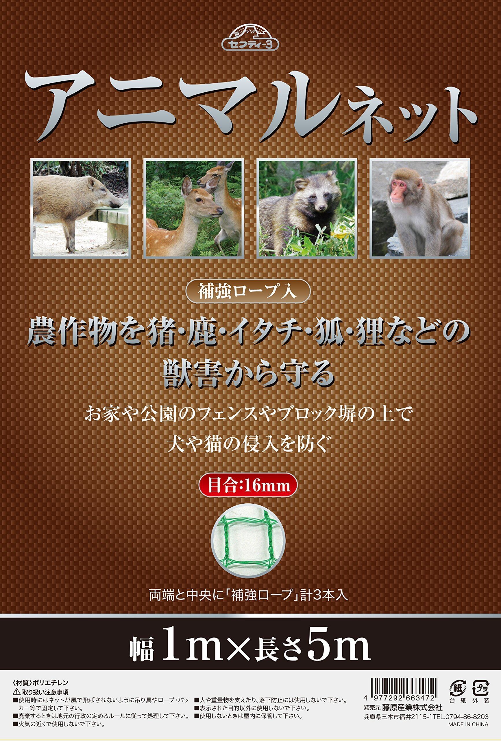 セフティー3(Safety-3) アニマルネット 補強ロープ入 目合16mm 幅1m×長さ5m