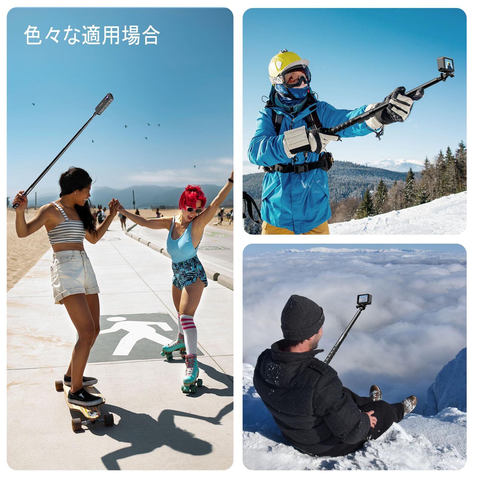 【幅広い互換性】延長棒の上部は標準1/4インチネジで、またはgopro用アクセサリーに付き、HD カメラを含めたすべてのGoPro Hero (ゴープロヒーロー)カメラに対応可能で 、Insta360用 ONE RS/ONE X2/ONE X/ONE DJI Osmoなどアクションカメラとスマホなどに適しています