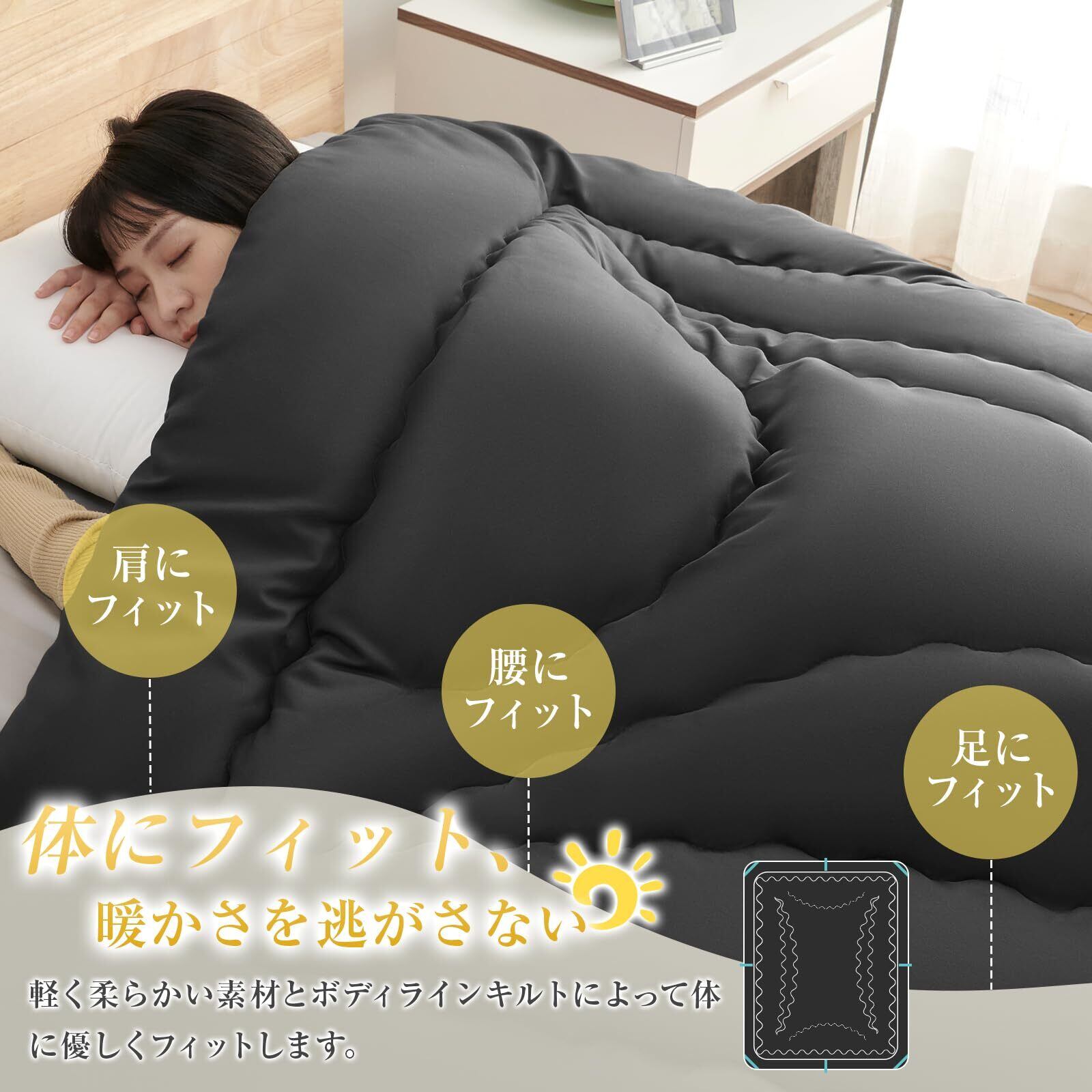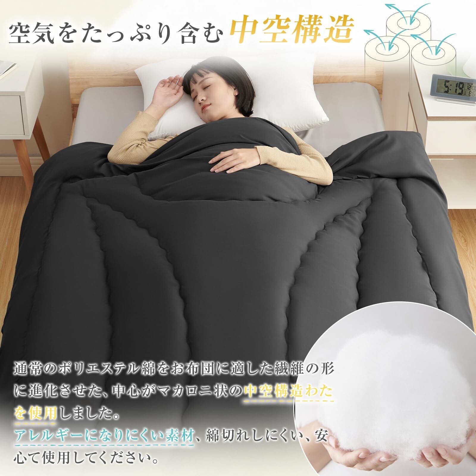 【ピーチスキン加工、やわらかくしっとり触感】肌に優しいピーチスキンの触り心地でしっとり気持ちよく、ムレにくく快適です。ほこりが出にくい、綿切れしにくい、中空ポリエステル綿を使用。ズレ防止ループ付き端の8ヶ所にズレ防止用ループが付いているので、お布団がズレる心配もありません。