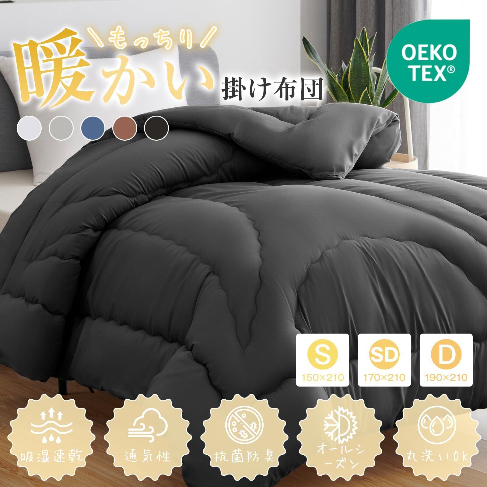 【特価セール】掛け布団 シングル 肌掛け布団 オールシーズン 洗える 掛けふとん かけ布団 柔らかな肌触り ほこりが出にくい 通気性 軽量 抗菌防臭 ふとん 合掛け布団 掛布団 【SEK衛生認証 Ag+銀イオン抗菌素材 アレルギー対策】 150x210cm ブラック (中綿約1.0KG)