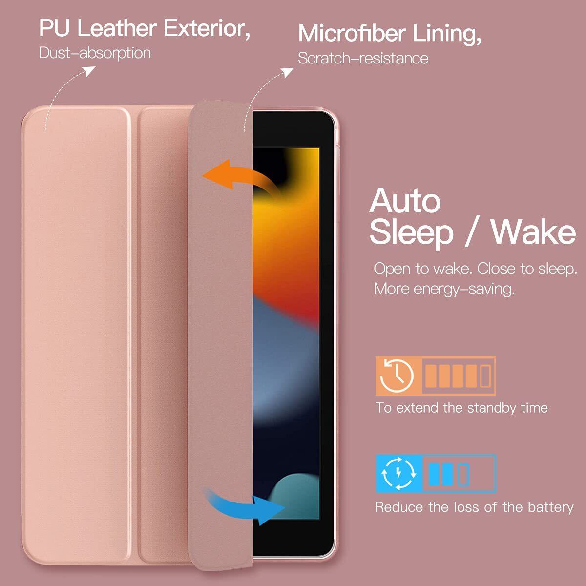 iPad 9世代 ケース iPad9 2021 iPad8 2020 iPad 10.2ケース 2019 TiMOVO ipad 第9世代/第8世代/第7世代ケース 10.2インチ 半透明 ハードカバー PUレーザー 開閉式 三つ折り スタンド マグネット オートスリープ 耐衝撃 軽量 落下防止 精密設計 着脱簡単 RoseGold