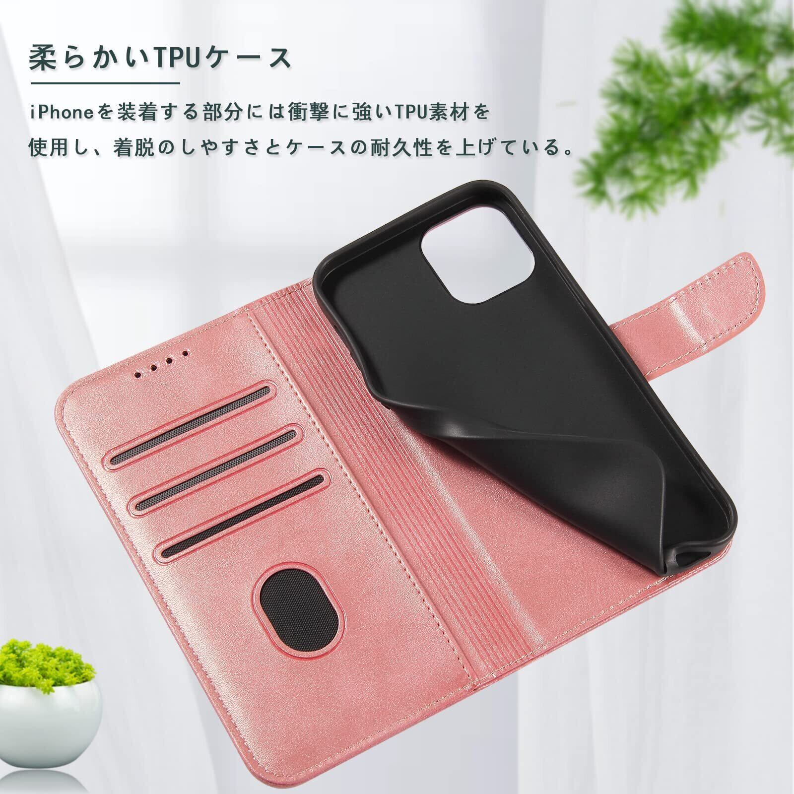 iphone 12 ケース 手帳型 iPhone 12 Pro ケース スマホケース 12/12Pro 用 手帳型 携帯カバー レザー 軽量 薄型 耐衝撃 耐摩擦 全面保護 マグネット式 カード収納 スタンド機能 PinLiSheng(iphone12/12pro, バラゴールド)