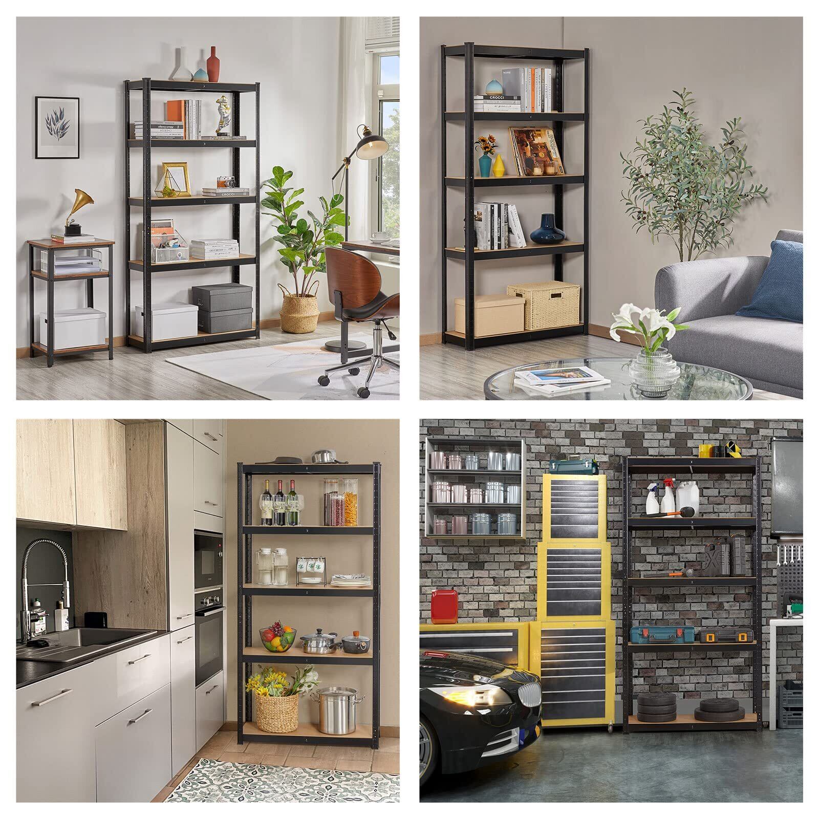 【多目的用途】五段の棚にはビニール製の脚が16あり、物置の収納棚に組み立てられますし、デスクとして平に置くこともできます。地下室、貯蔵室、作業室、お店、家庭、寝室、リビングルーム、キッチンなどに向いています。