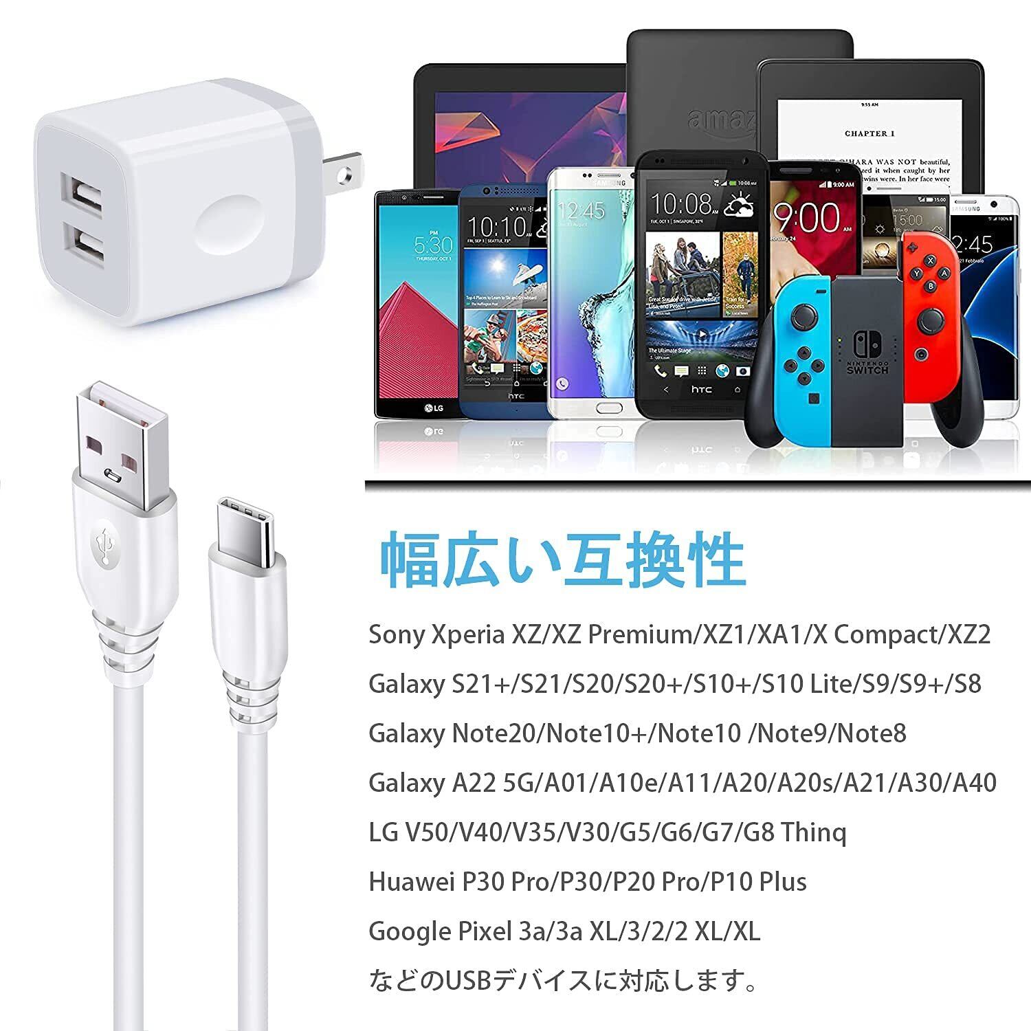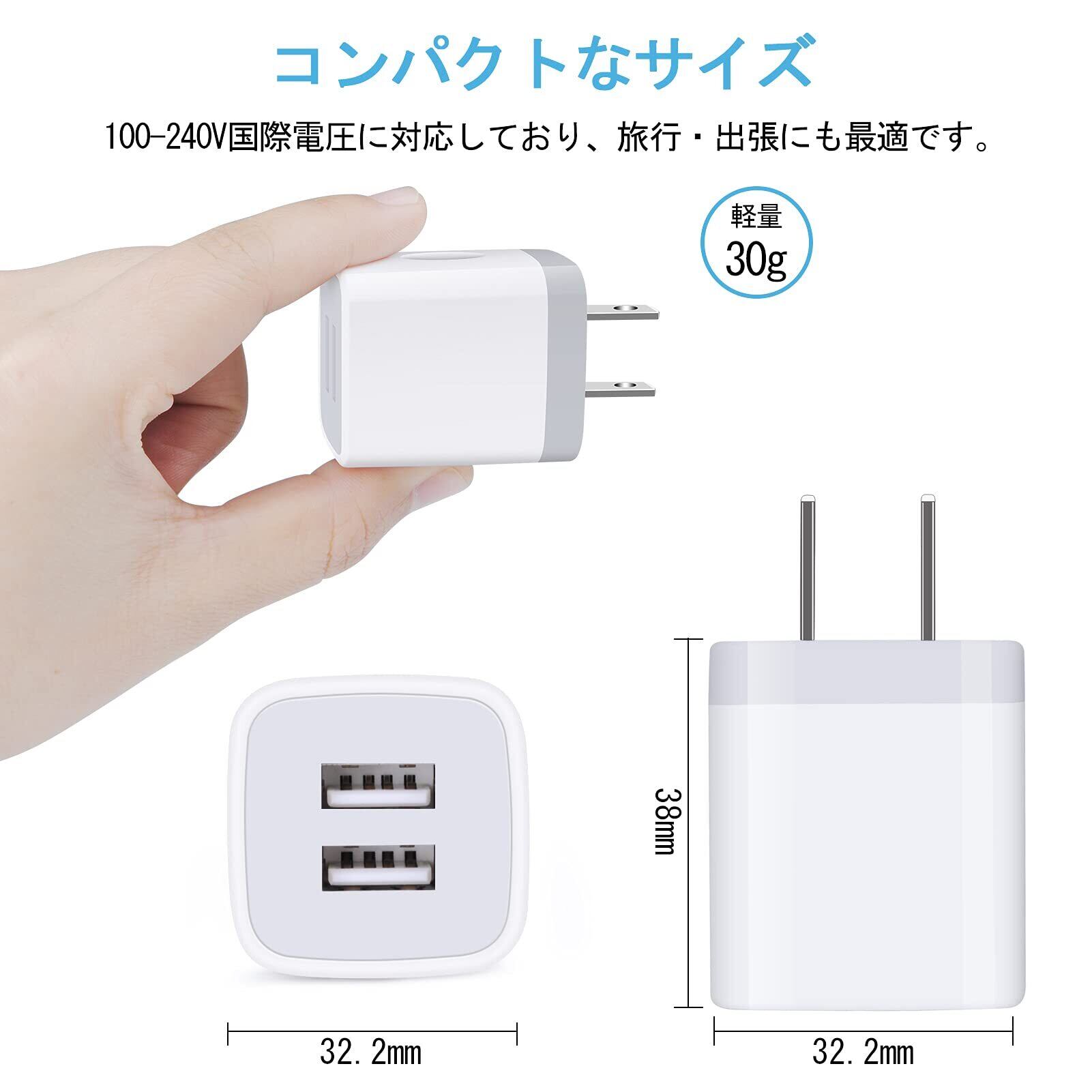 【パッケージ】USB充電器2ポート1個+Type-c充電ケーブル1本*1.8M。充電アダプターのサイズ (約):幅32mm*厚み32mm*高さ38mm。重さ:30g。当店の商品をお買い上げ12ヶ月以内に品質保証いたします。万が一故障発生したら、お気軽にご連絡ください。無償交換あるいは返金の対応は可能です。