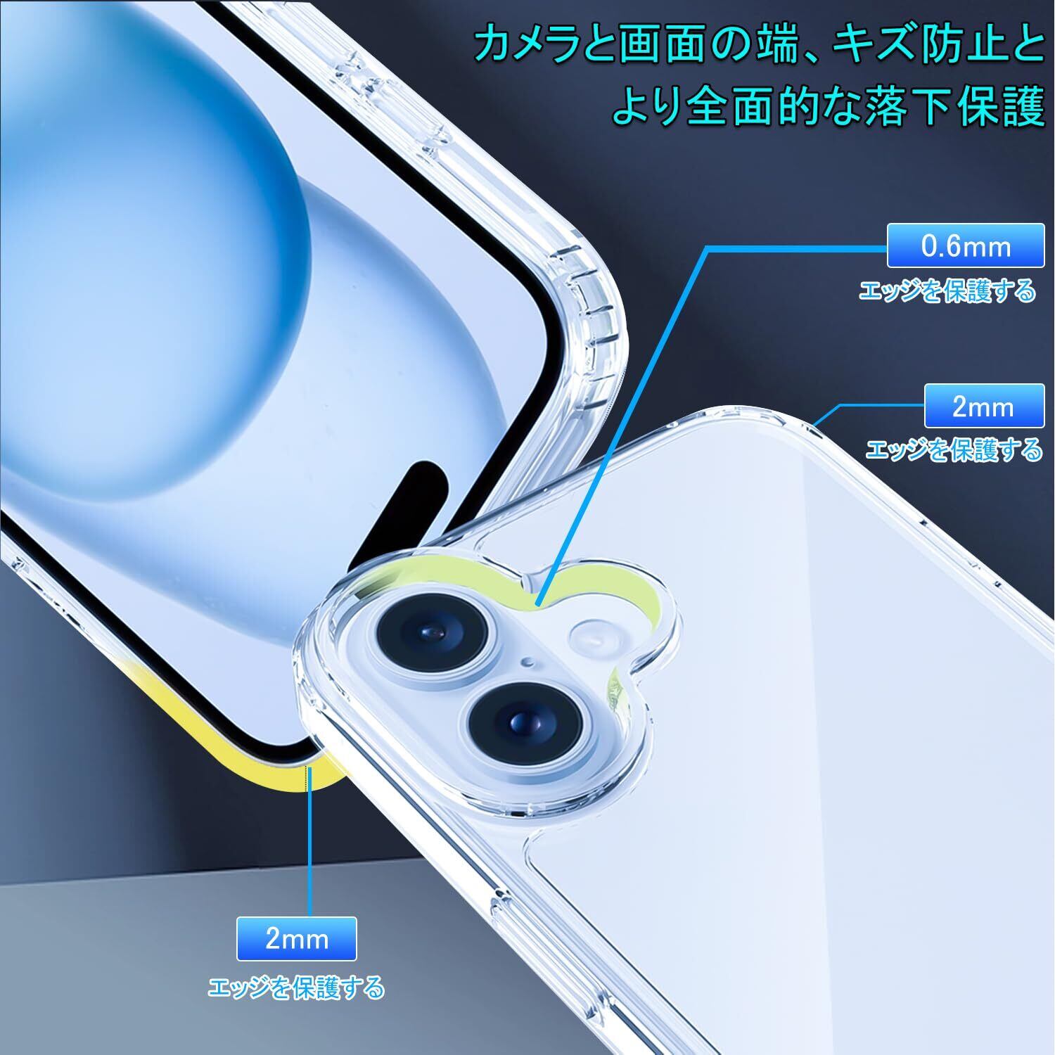 【細部までこだわる保護】カバーの縁はアイフォン16 の液晶画面より2mm高く、カメラレンズより0.6mm高い、併用の全面保護ガラスフィルムで平置きしても画面は接触しない、細部までの保護も配慮され、より一層な安心感を与えられる。クリアケースの保護性能を保ちながら、スマートさを損なわないよう、このケースは薄さと強度のバランスを取り、手にフィットする程よい厚みで、快適さが保ち、ボタンも押しやすく、最適な設計で作り出す。