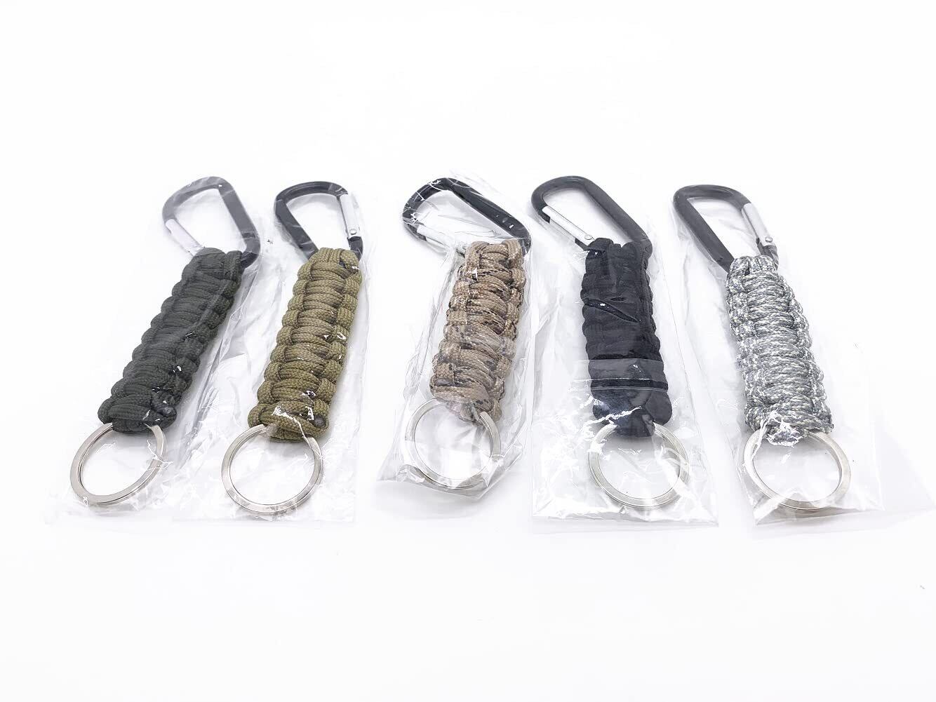 5本のカラビナ付きパラコードキーチェーン ストラップリングフッククリップ 戸外キャンプ バックパック用 - 5色