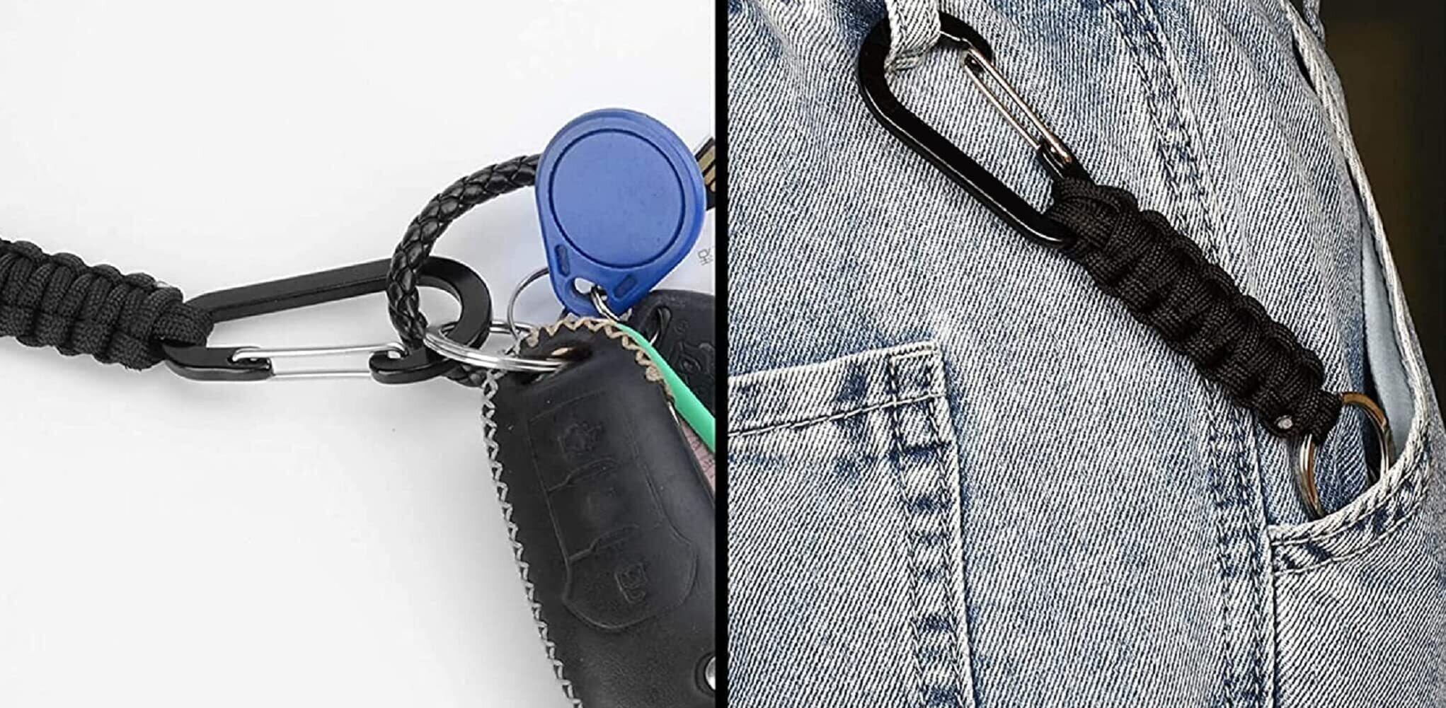 頑丈なパラコードを編み込んで、カラビナが付いて、ズボンのベルトループやバッグに簡単に取り付けることが出来ます。鍵をまとめる、懐中時計のキーチェーン用をお勧めます。
