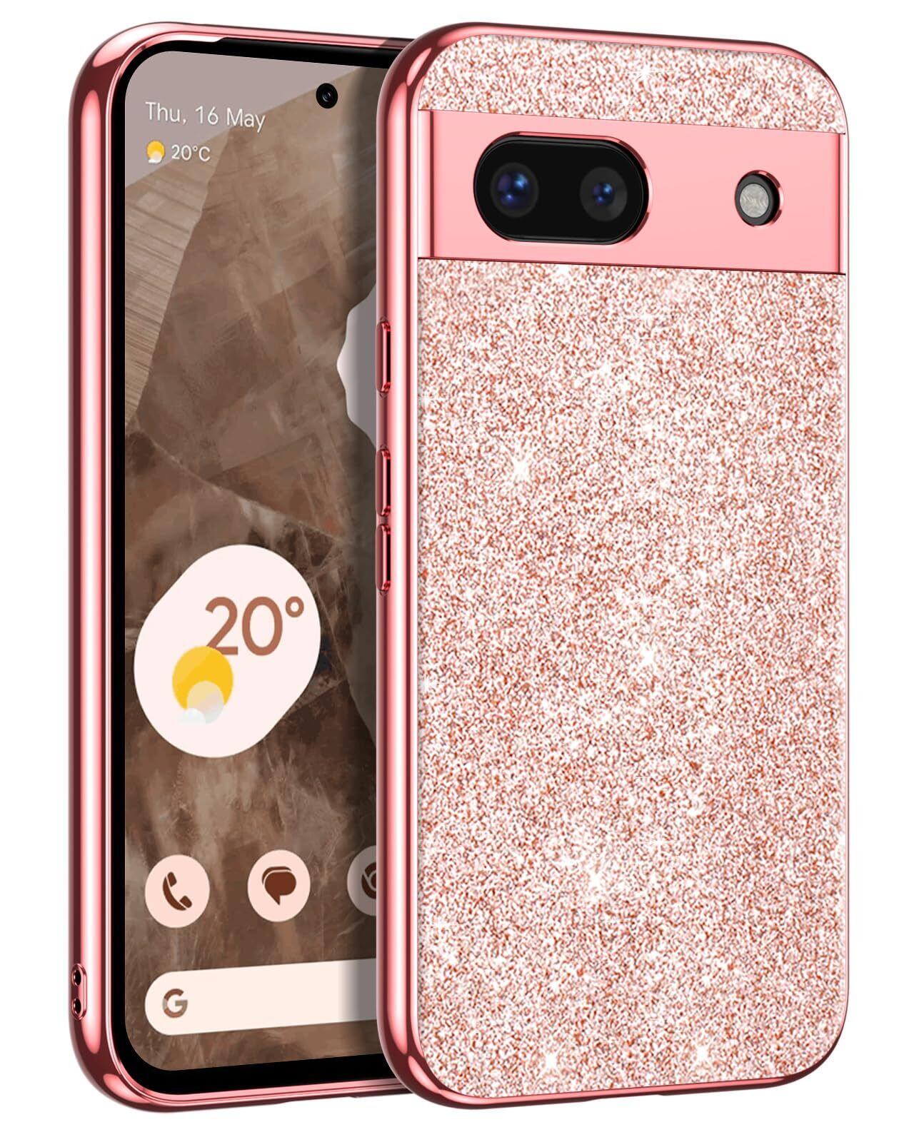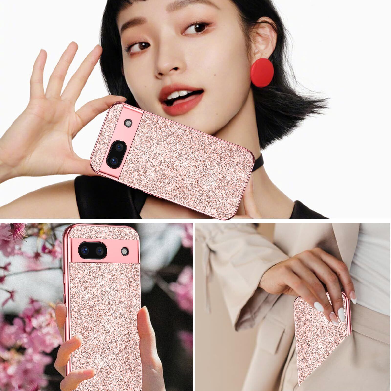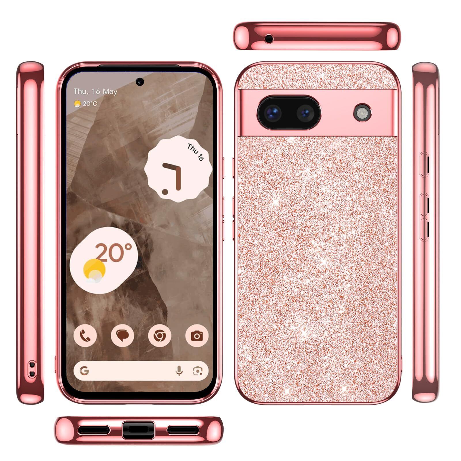 GUAGUA Google Pixel 8a ケース キラキラ ピクセル 8a ソフト TPU カバー 輝きピカピカ グリッター ケース 耐衝撃 スマホケース 8a ケース ワイアレス充電対応 薄型 軽量 ストラップホール付き グーグルピクセル8a カバー(ローズゴールド バラ金)