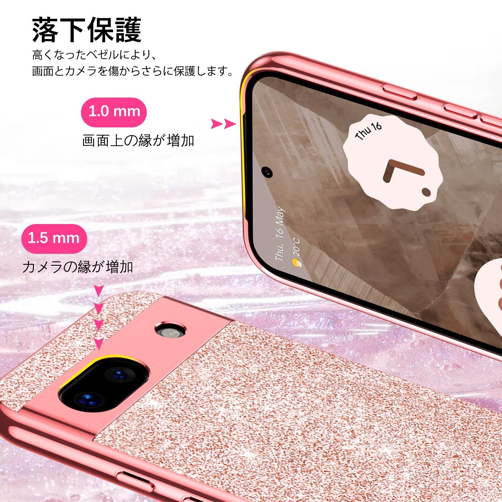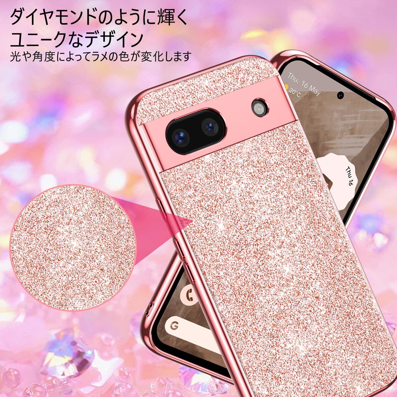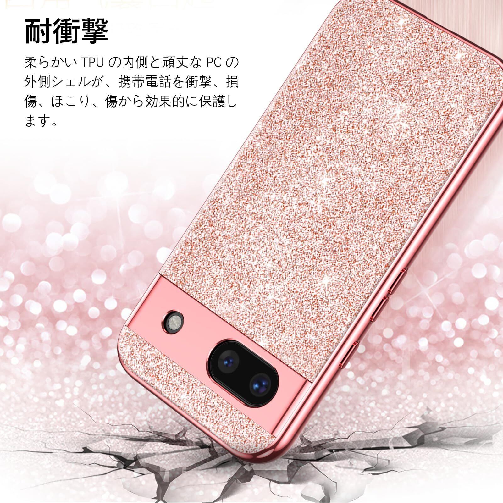 Google Pixel 8a ケース キラキラ ピクセル 8a ソフト TPU カバー 輝きピカピカ グリッター ケース 耐衝撃 スマホケース 8a ケース ワイアレス充電対応 薄型 軽量 ストラップホール付き グーグルピクセル8a カバー(ローズゴールド バラ金)
