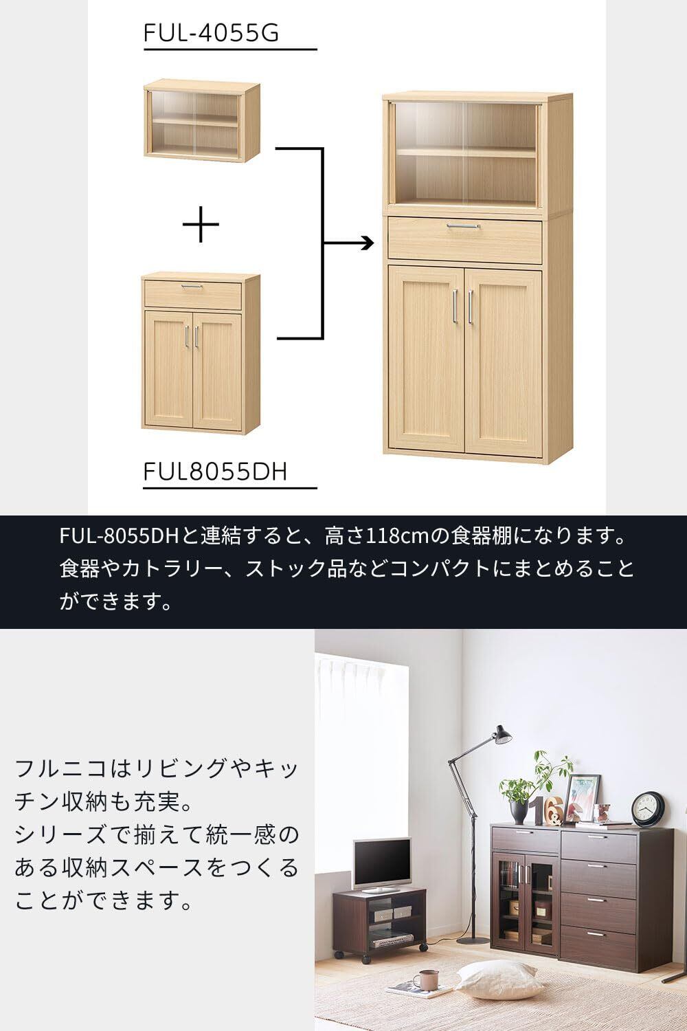 FUL-4055G DKはベーシックな機能のミニ食器棚。