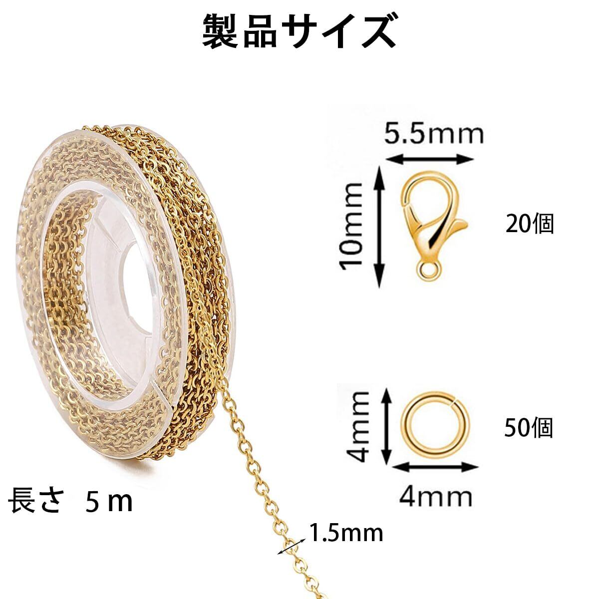 【仕様】:アクセサリーチェーン1巻、長さ約5 m、幅約1.5 mm、ロブスターボタン20個、リング50個。