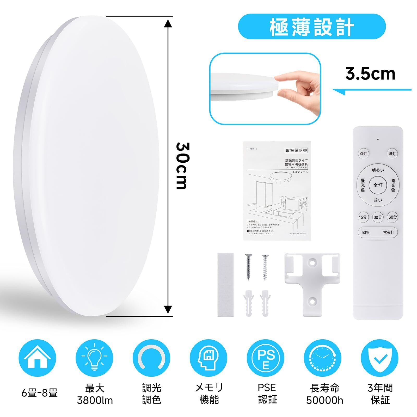 LEDシーリングライト6畳28W 4000LM シーリング+ライト 天井照明器具 おしゃれ 蛍光灯 電気 調色/調光タイプ 昼光色 電球色 リモコン付き 豆電球常夜灯モード メモリ機能 15分/30分/60分スリープタイマー 玄関 寝室 和室 台所 洗面所 PSE認証獲得
