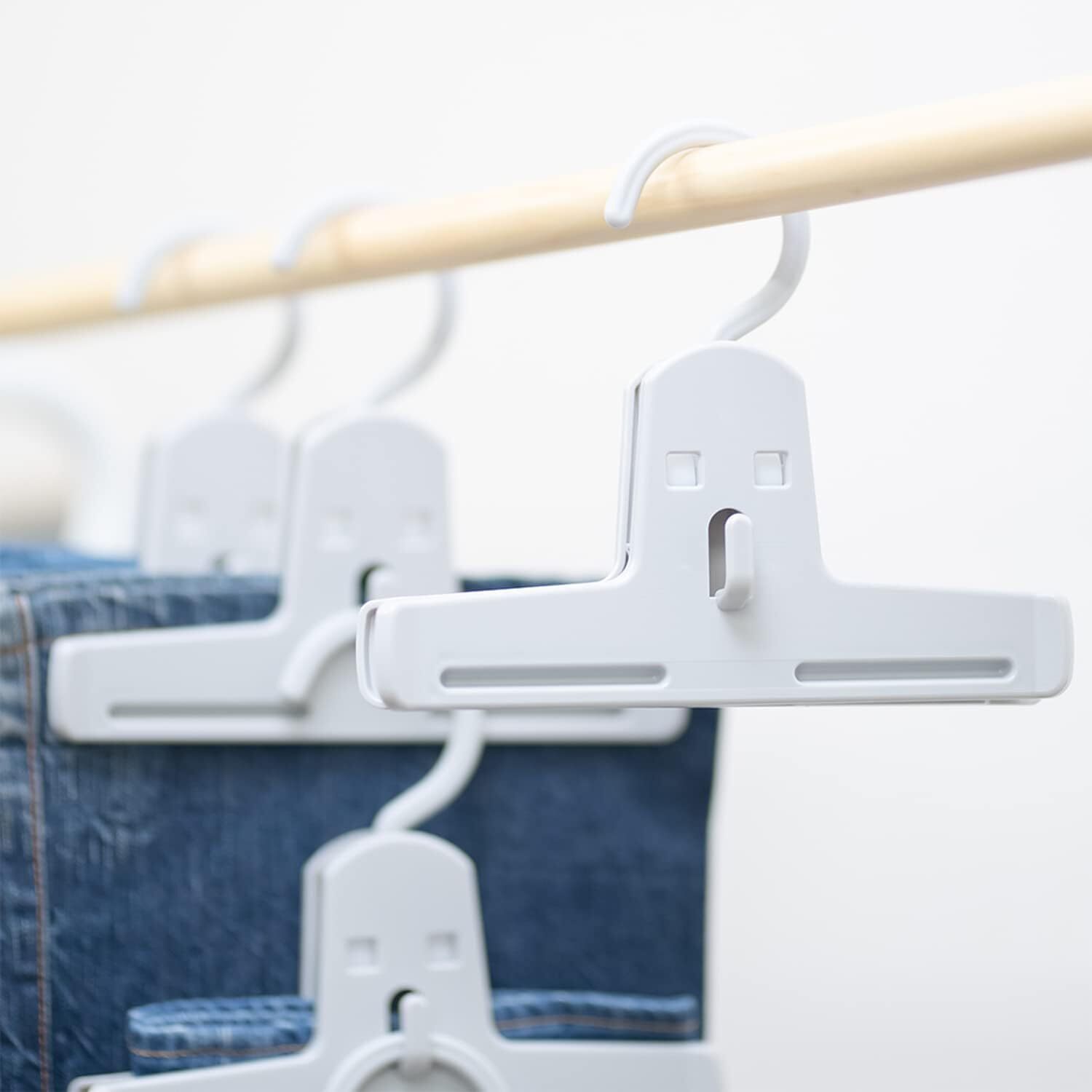 スラックスやパンツ、スカートなどのボトムスを収納できる