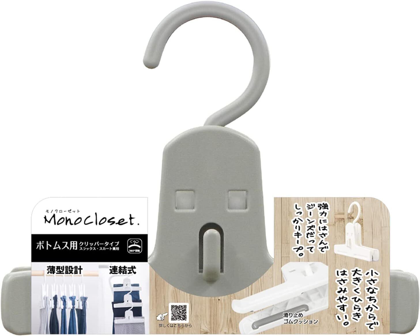 シンコハンガー(Shinkohanger) 衣類用ハンガー モノクローゼット イージークリッパー 6本セット グレー 日本製 ラック ズボン ピンチ 洗濯 タオル スラックス バスタオル ネクタイ 頑丈 かたくずれ防止 物干し スカート パンツ 押し入れ 収納 コート スーツ 015575