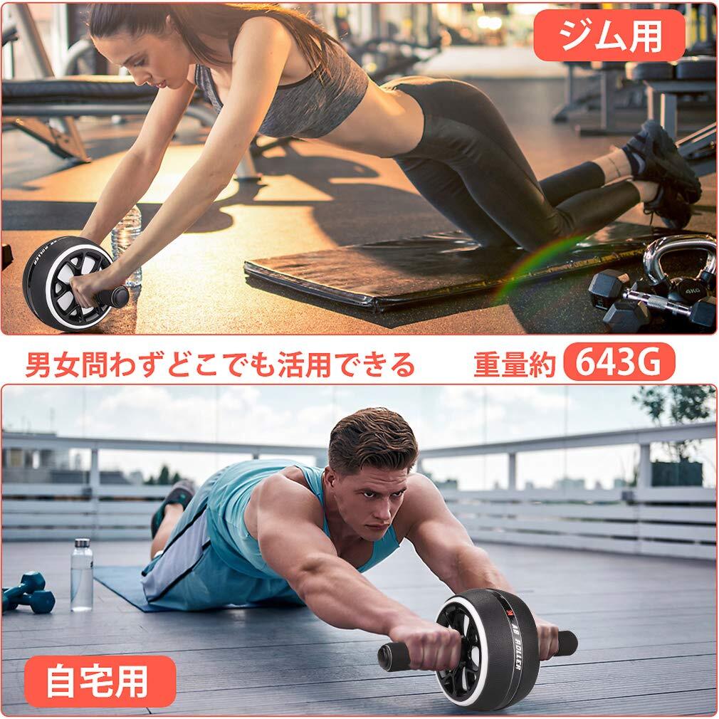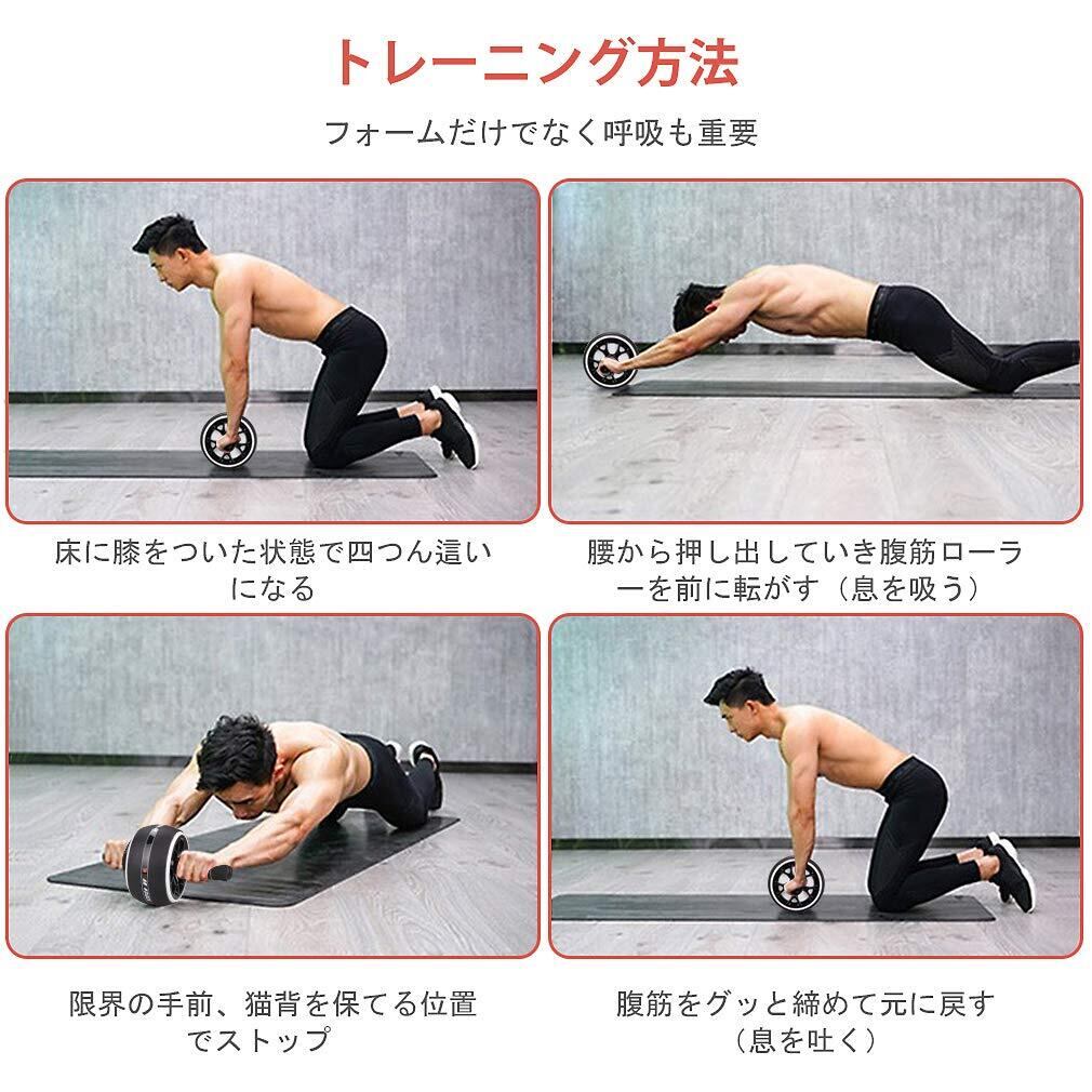 AUOPLUS 腹筋ローラー 膝マット付き アブホイール 静音 一輪 腹筋 トレーニング器具 筋トレグッズ エクササイズローラー 体幹 ストレッチ ダイエット器具 男性/女性 初心者/上級者 アブローラー