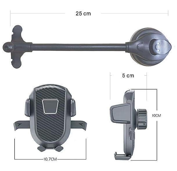 下部の支えはスライド式なので、サイズの調節が可能です。吸盤ロック機能により、スマホホルダーが転落しないようにしっかりと固定できます。