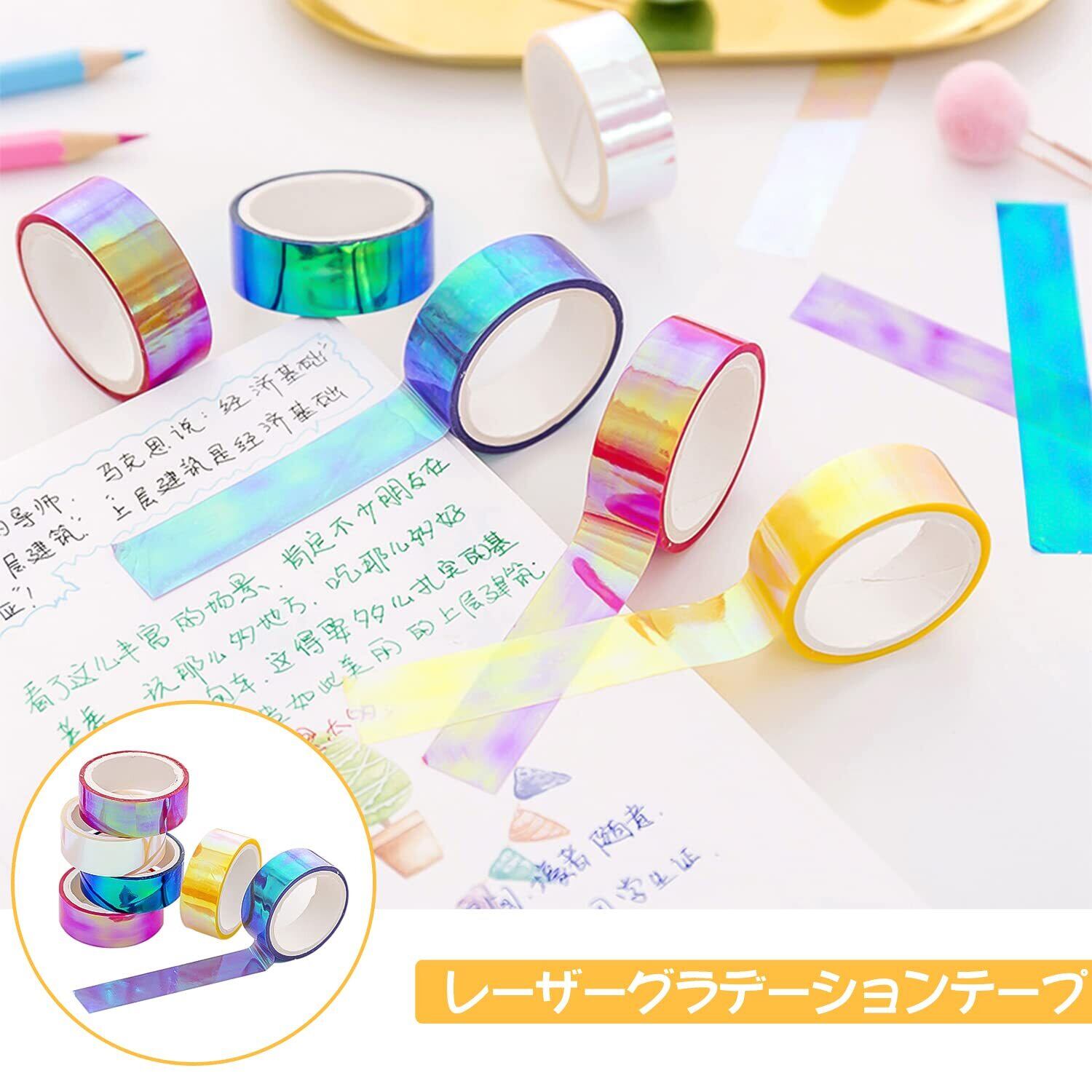 【カラー】6色【サイズ】:単巻サイズ(横1.5cm*縦5m)【製品の内容】:全6巻。